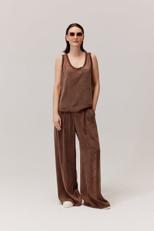 Spodnie z wiskozą i lyocellem Figro brązowe