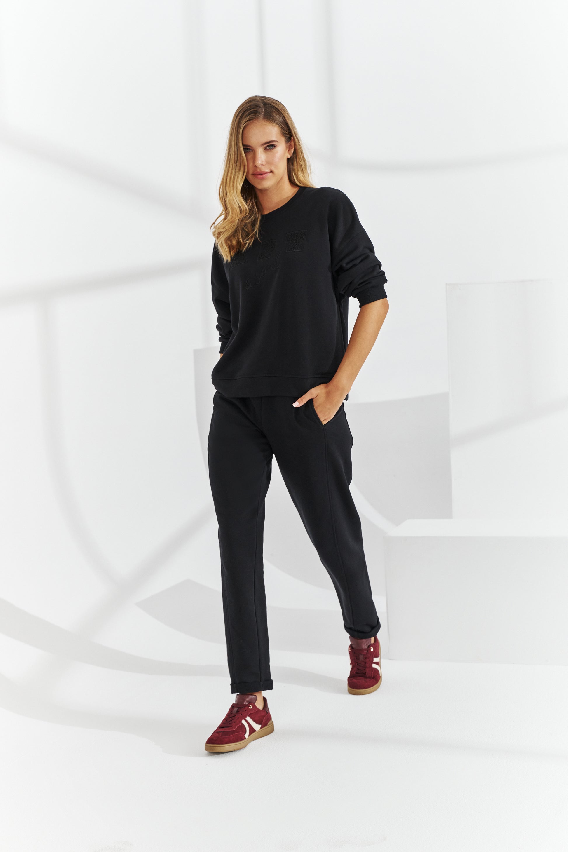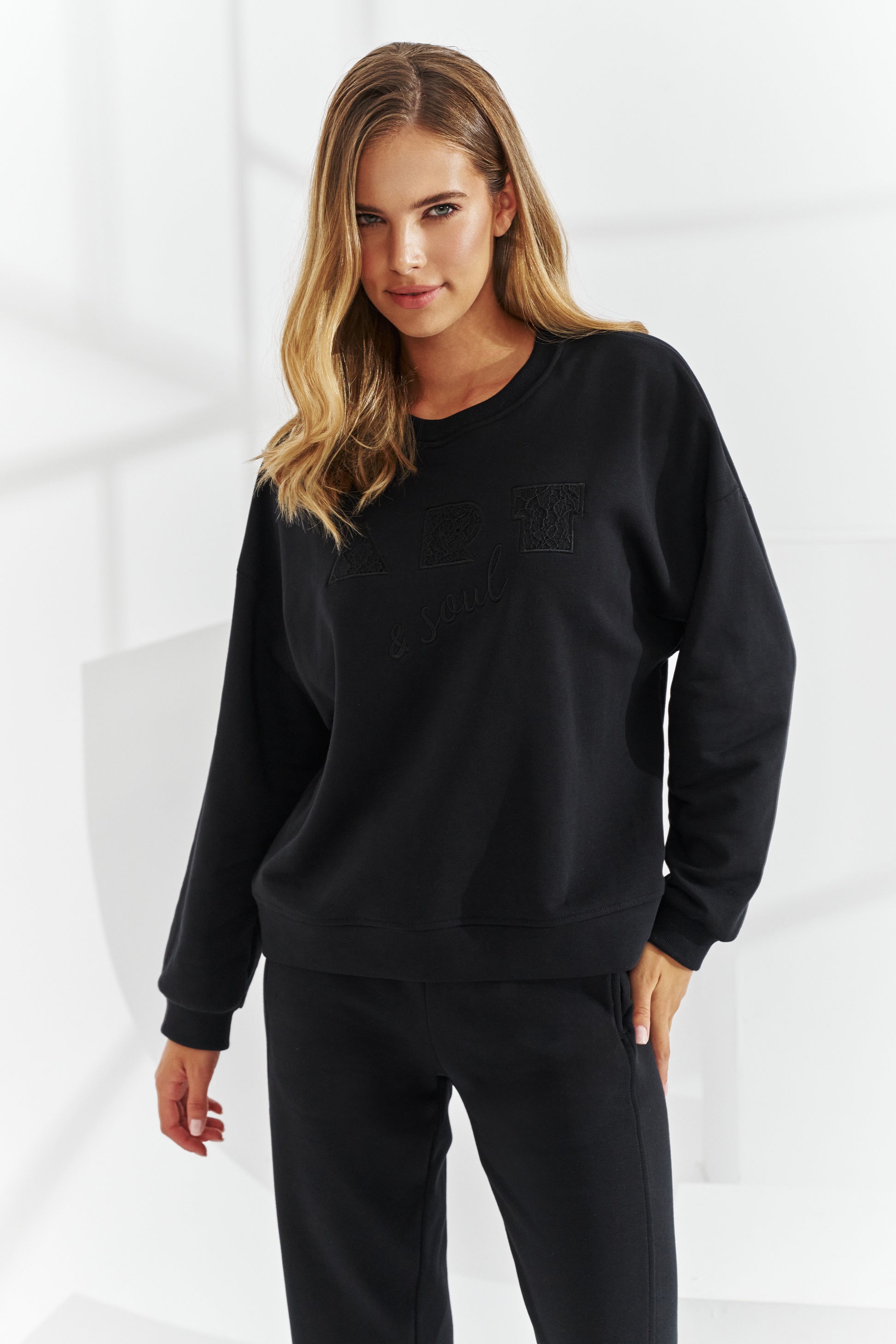 - Color: a perfect black sweatshirt is the basis of casual style.