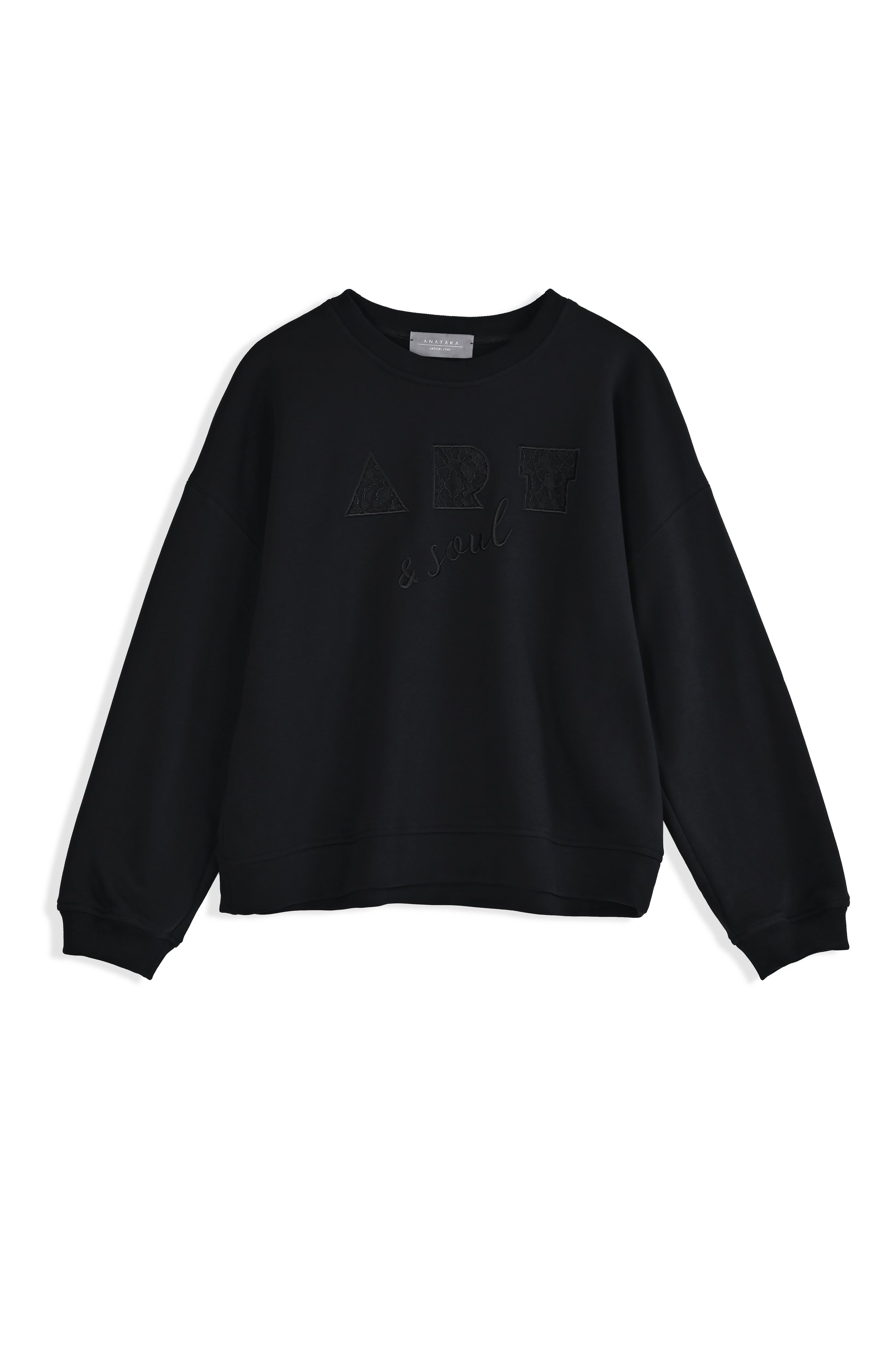 - Design: stylized inscription with delicate lace adds character to an "ordinary" sweatshirt.