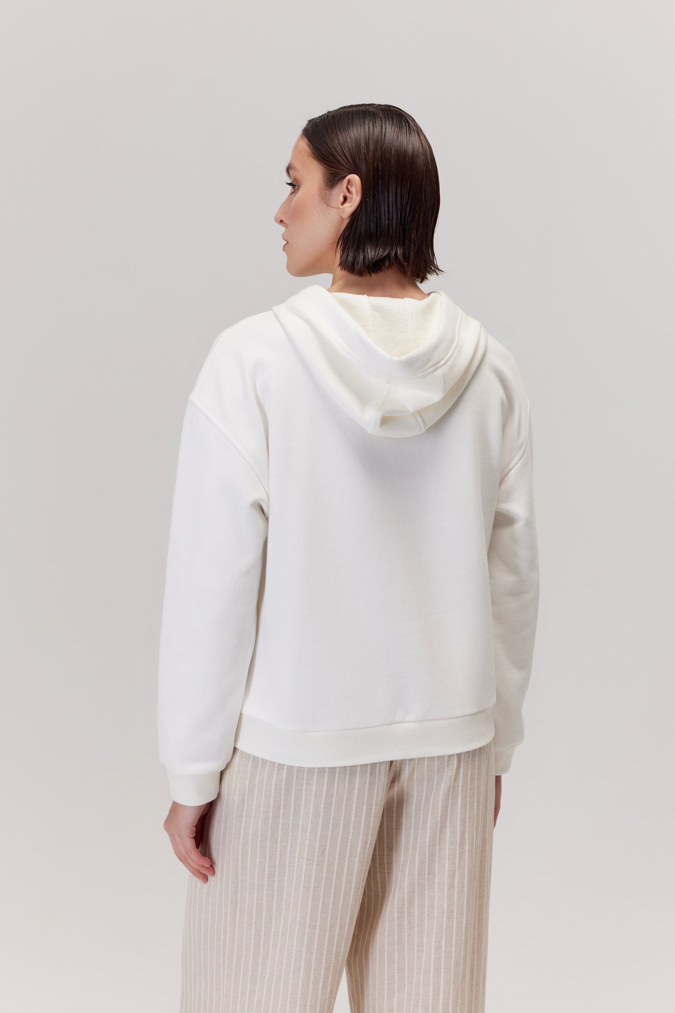 - Bluza Korta to minimalistyczna wersja klasycznego modelu hoodie, zachowana w eleganckim, jasnym odcieniu;