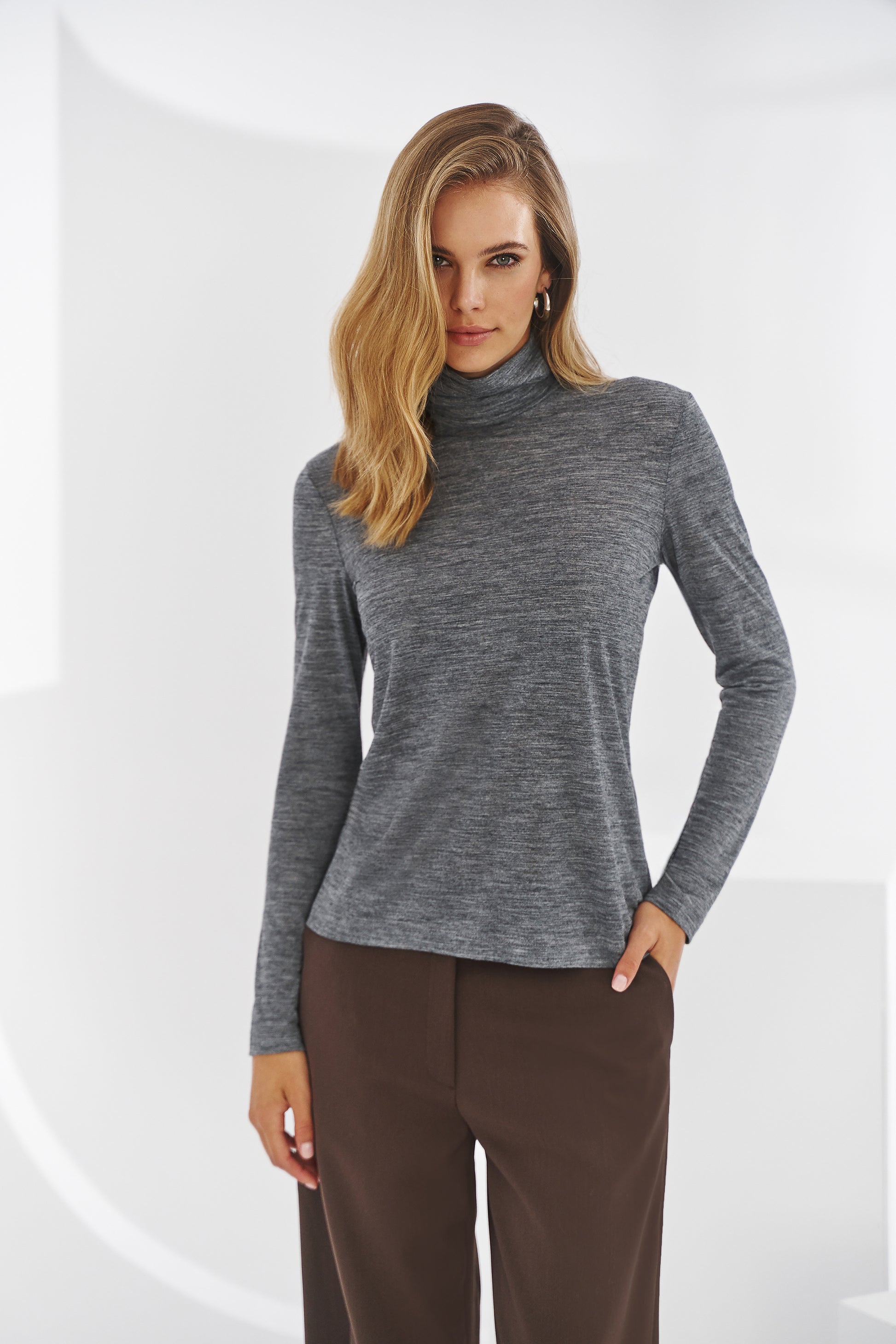 - Color: such a gray, heterogeneous turtleneck will complement any elegant and sporty outfit well.
