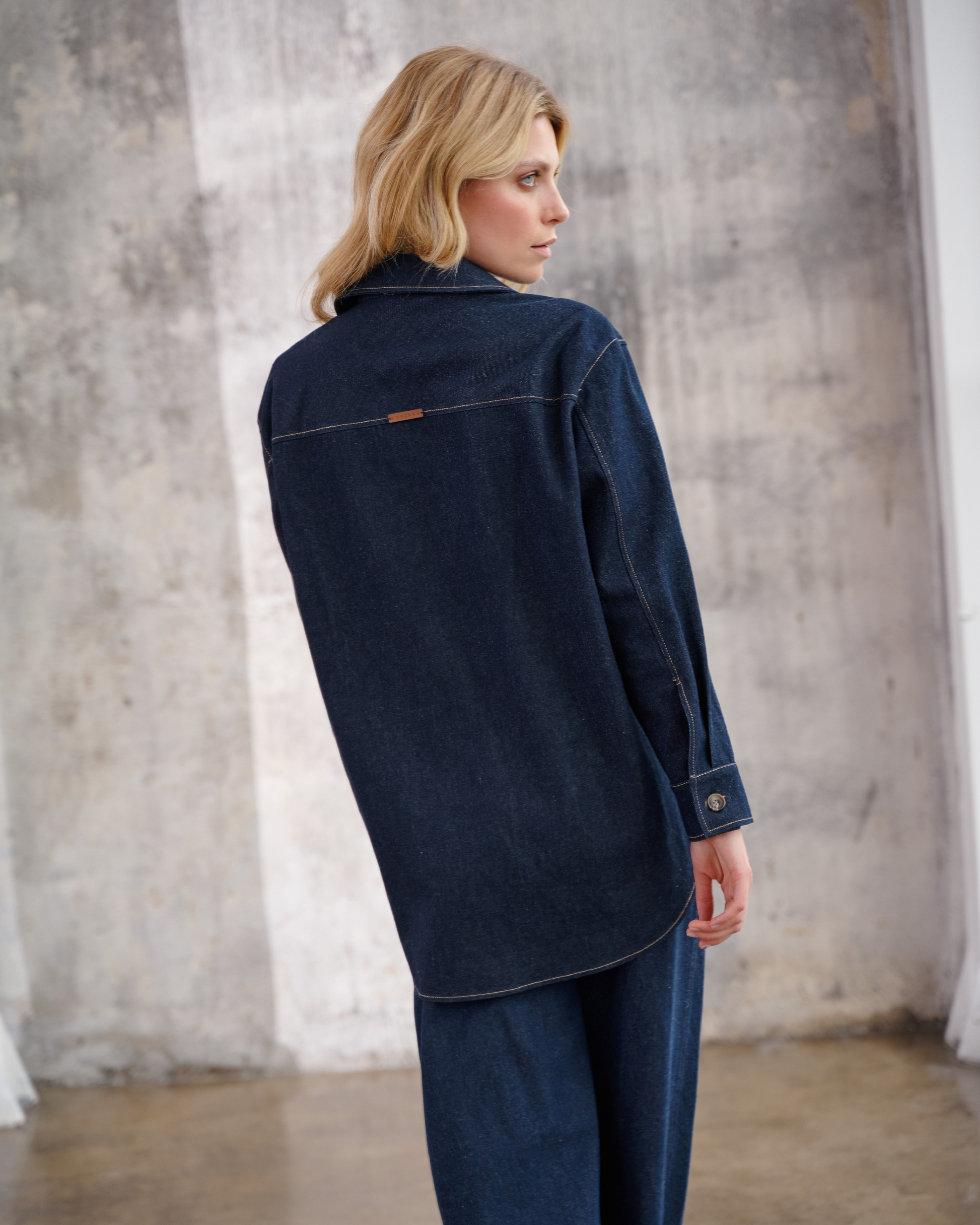 Sign up for our newsletter and get a 10% discount on your purchasesThe Noris Jeans shirt is a very comfortable and easy-to-wear proposition, it is made of 100% high-quality cotton. On the front it has two large pockets and decorative buttons, a classic collar and cuffs that can be fastened. On the back of the shirt there is a leather detail with our logo, and all the stitching of the shirt is made with contrasting threads, which emphasizes its uniqueness. The shirt's sleeves come from the lowered shoulder, end with a cuff with a button, and can be rolled up, making the style appear looser.