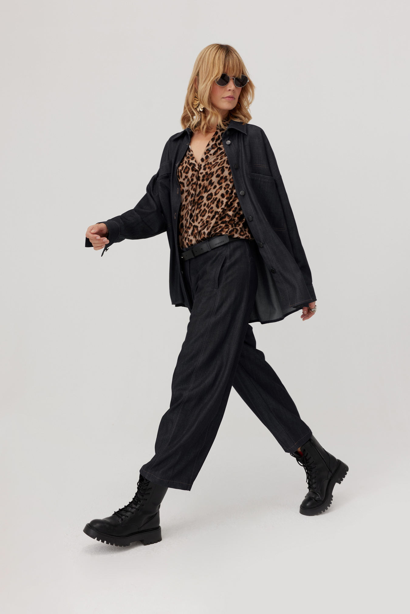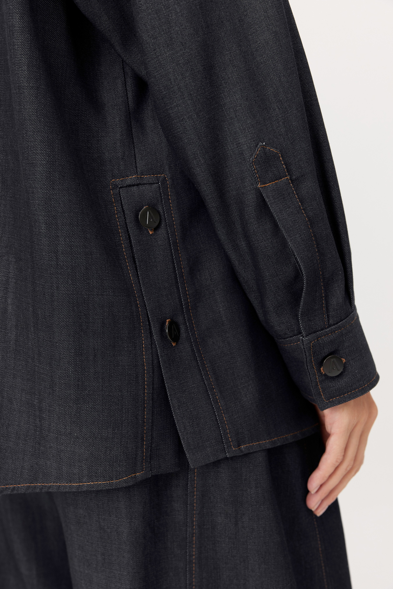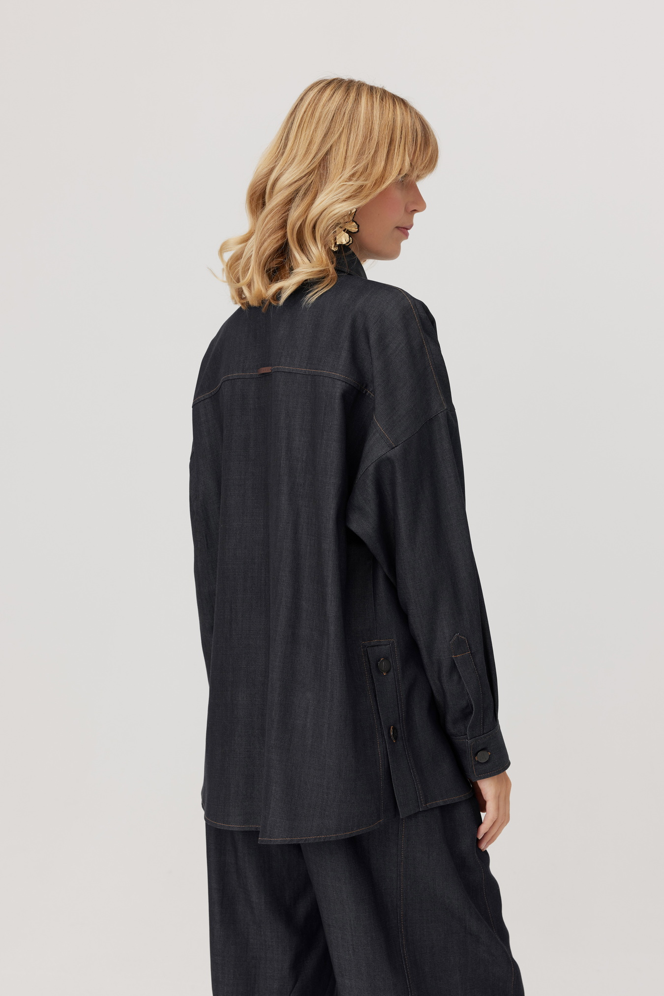 Sign up for our newsletter and get a 10% discount on your purchasesKoszula Lapis z lyocellu przypominającego denim to element garderoby, który potrafi odmienić stylizację w mgnieniu oka. Miękka lejąca tkanina delikatnie układa się na sylwetce, tworząc nowoczesny, swobodny look. Kontrastowe przeszycia i duże kieszenie z przodu nadają jej miejskiego charakteru. Boczne rozcięcia zapinane na guziki pozwalają bawić się formą. Całość dopełniają guziki z wytłoczonym logo Anataka. Doskonale prezentuje się noszona samodzielnie lub do naszych spodni Lapis. Uniwersalna i wygodna – sprawdzi się przez wiele sezonów.