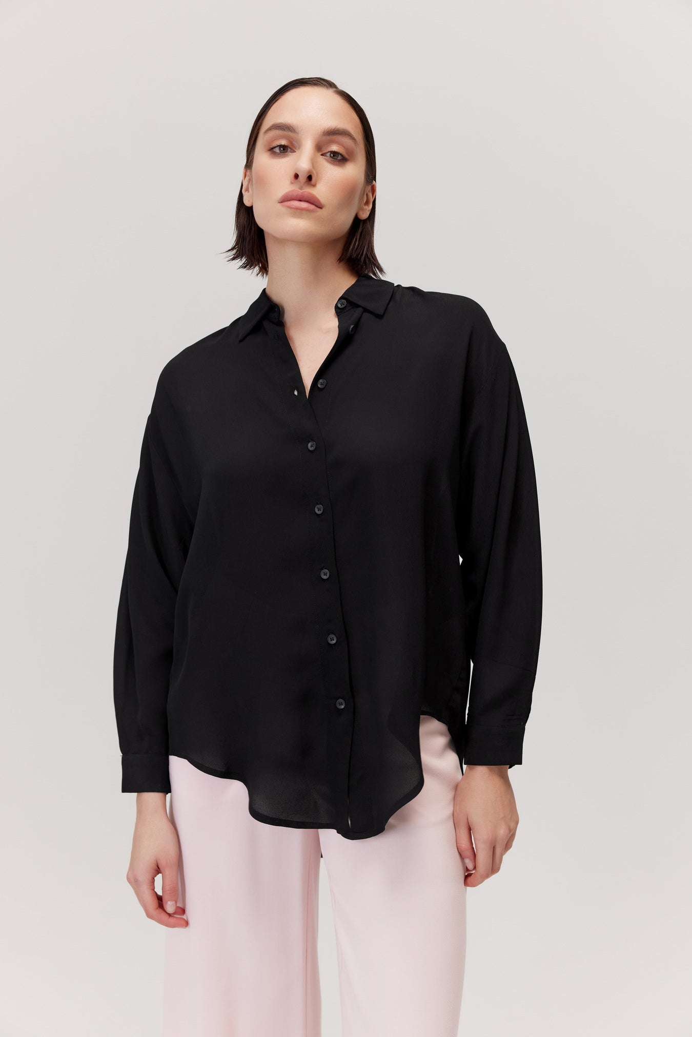 Koszula Nevra to nowoczesna interpretacja klasyki – z nonszalanckim luzem i subtelnym szykiem. Wykonana z lekkiej, półtransparentnej tkaniny, która miękko układa się na sylwetce, idealnie sprawdza się w roli codziennej bazy, ale również jako element bardziej eleganckich stylizacji.