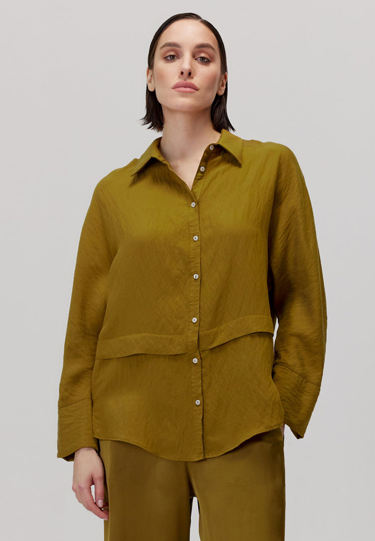 - Koszula Rina to wyważone połączenie elegancji, nowoczesnej formy i codziennej wygody. Wykonana z lekkiej, miękko układającej się tkaniny o subtelnie zarysowanej fakturze, prezentuje się niezwykle stylowo – zarówno w zestawach formalnych, jak i casualowych;