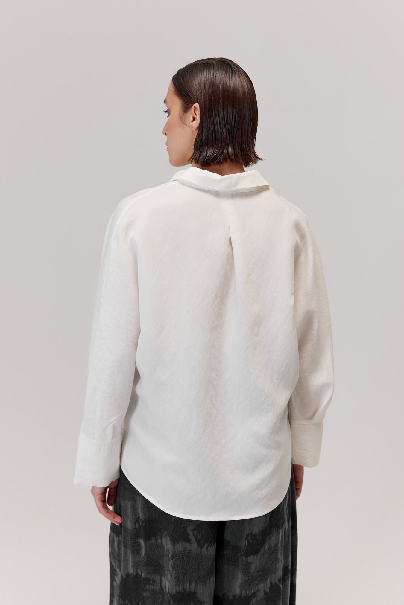 - Koszula Rina to wyważone połączenie elegancji, nowoczesnej formy i codziennej wygody. Wykonana z lekkiej, miękko układającej się tkaniny o subtelnie zarysowanej fakturze, prezentuje się niezwykle stylowo – zarówno w zestawach formalnych, jak i casualowych;