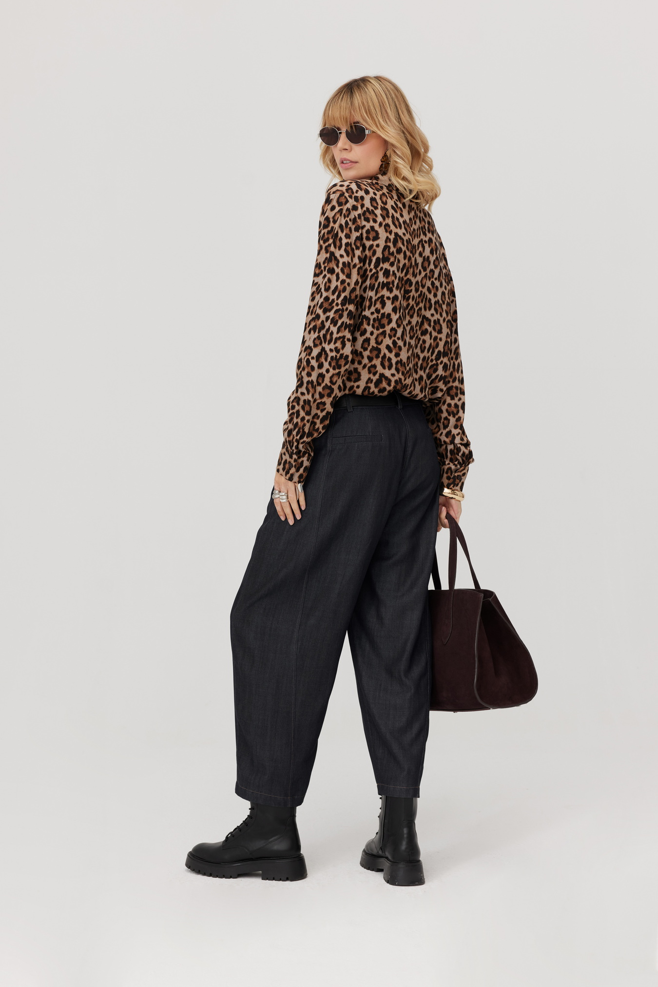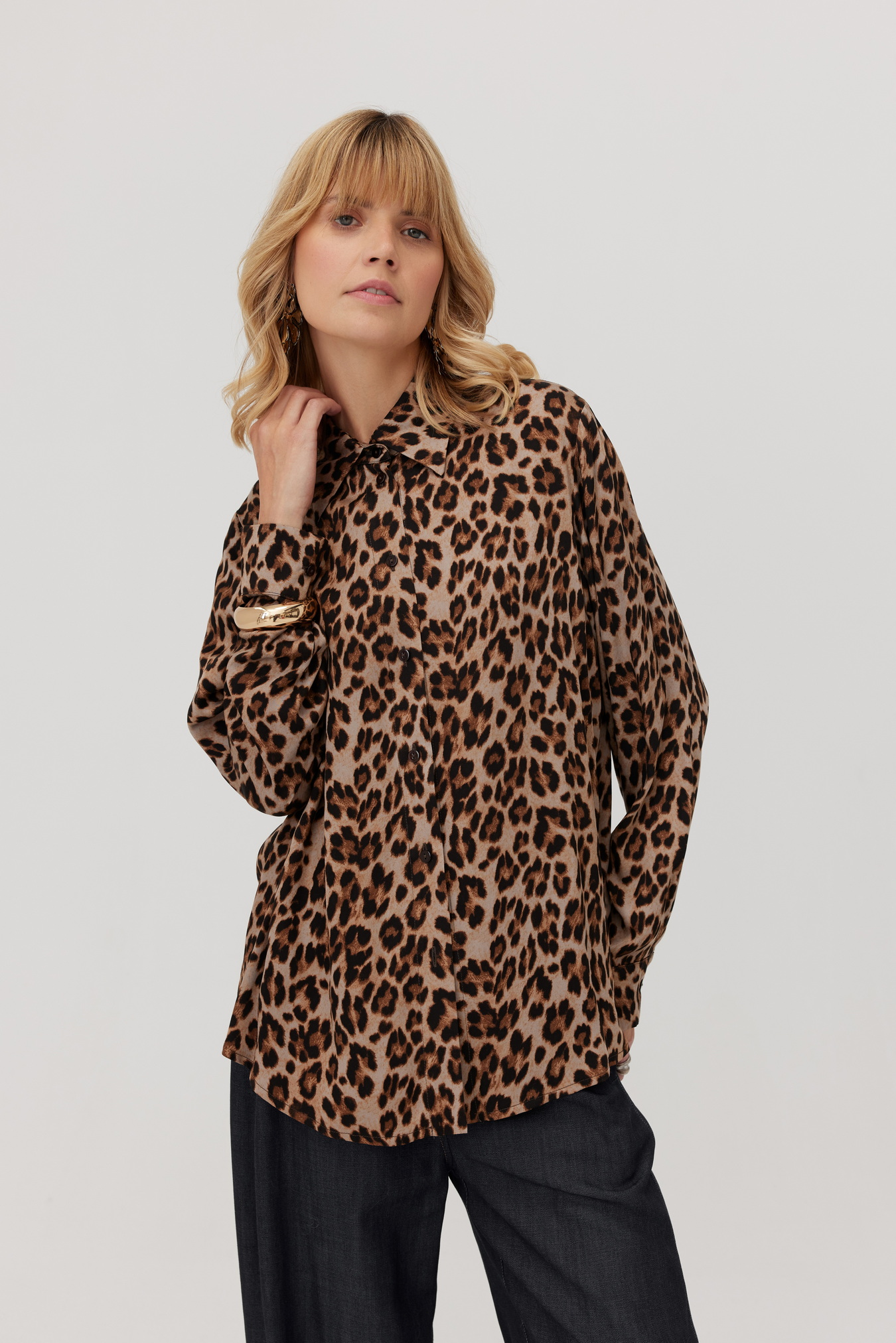 Sign up for our newsletter and get a 10% discount on your purchasesKoszula Silko w panterkę to mocny akcent, który od razu przyciąga wzrok i ożywia nawet najprostszą stylizację. Uszyta z miękkiej, lejącej się wiskozy swobodnie układa się na sylwetce. Luźniejszy fason z klasycznym kołnierzykiem pozwala nosić ją na wiele sposobów. Stonowana paleta brązów sprawia, że wyrazisty wzór wygląda subtelnie i z klasą. To koszula, która nadaje stylizacji charakteru – wystarczy prosta biżuteria, by wyglądać nowocześnie i z wyczuciem. Połączona ze spodniami Lapis nabiera miejskiego looku.
