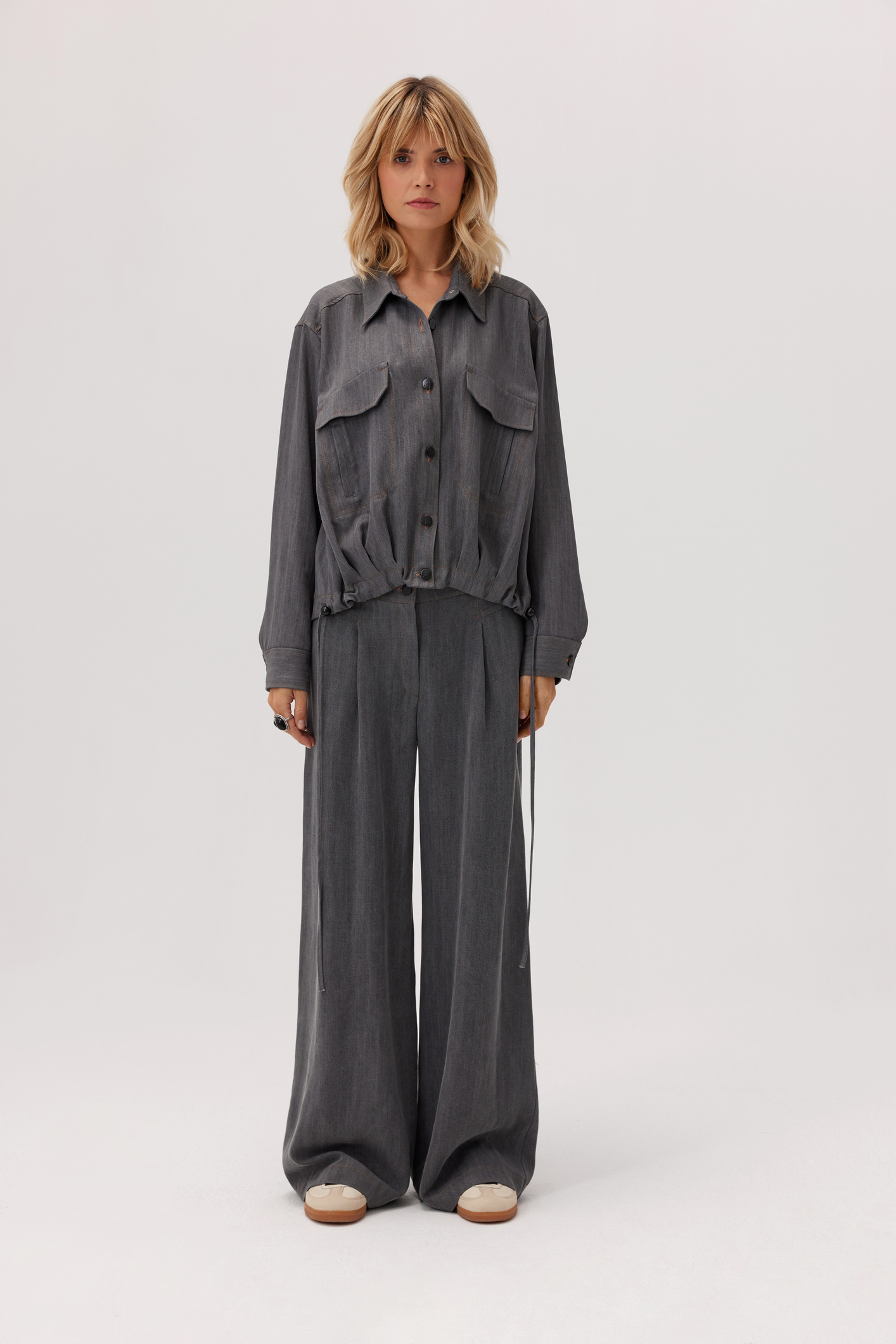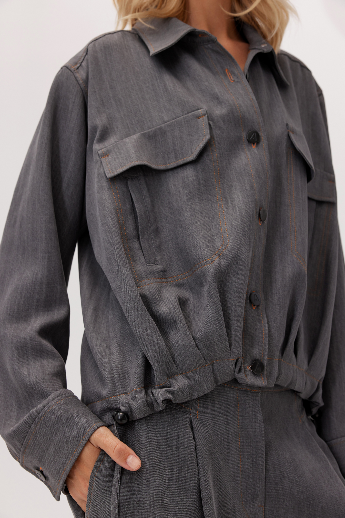 Sign up for our newsletter and get a 10% discount on your purchasesKoszula Storm wyróżnia się niepowtarzalnym, swobodnym fasonem i innowacyjnymi detalami. Wyjątkowo miękka tkanina przypomina denim lecz jest delikatniejsza i przyjemniejsza w dotyku. Regulacja obwodu w dolnej krawędzi pozwala na stylizację koszuli na różne sposoby – od luźnego po bardziej dopasowany look. Fantazyjne, duże kieszenie z klapami, wyraźne stebnowania oraz opuszczone ramiona nadają całości wyrazisty, nowoczesny charakter.