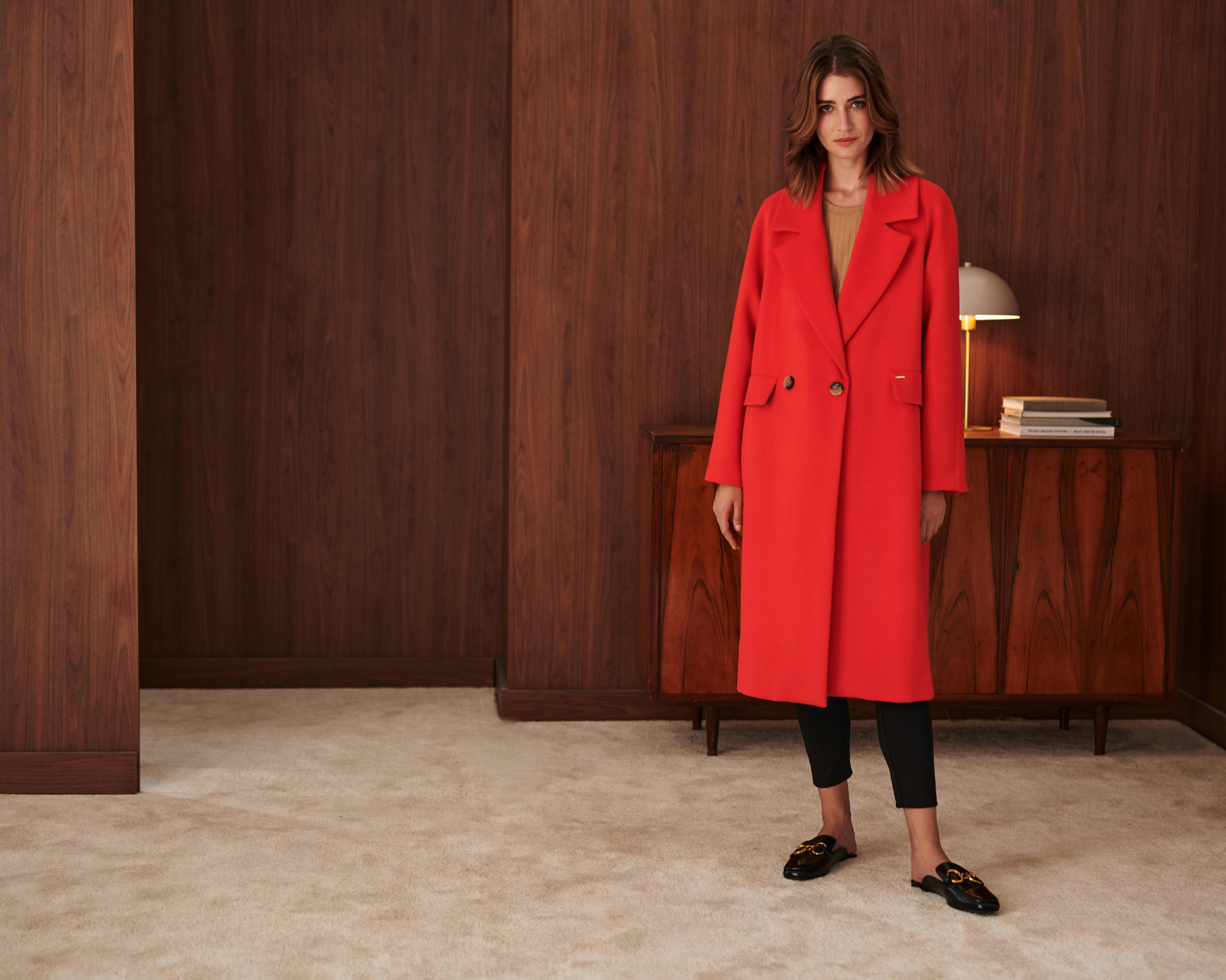 The Scarlet coat is a proposition for everyone who wants to stand out from the crowd! Magnetizing, saturated orange attracts attention! If you want to add energy to autumn mornings, this is definitely the coat for you. It looks fantastic with jeans and boots.
