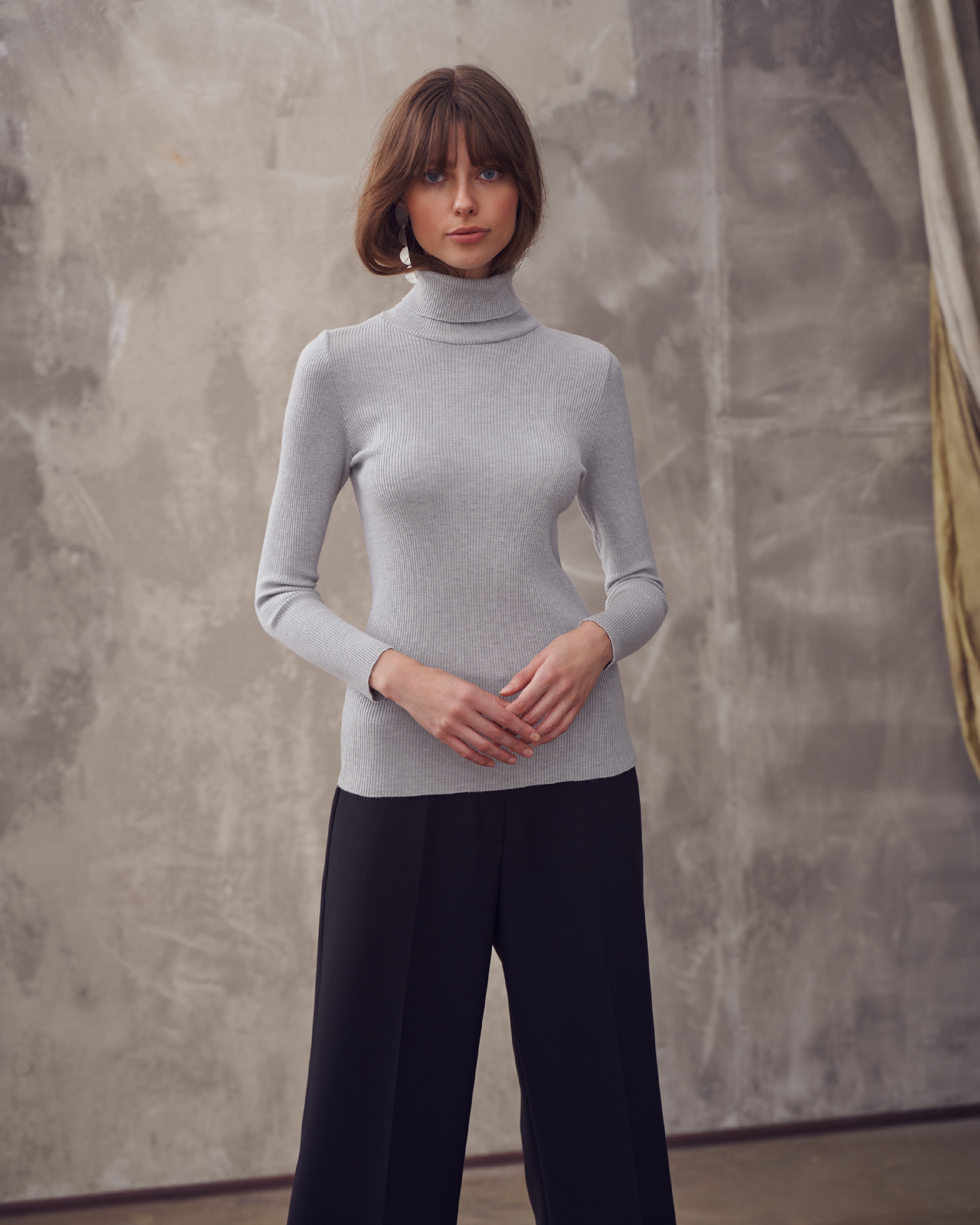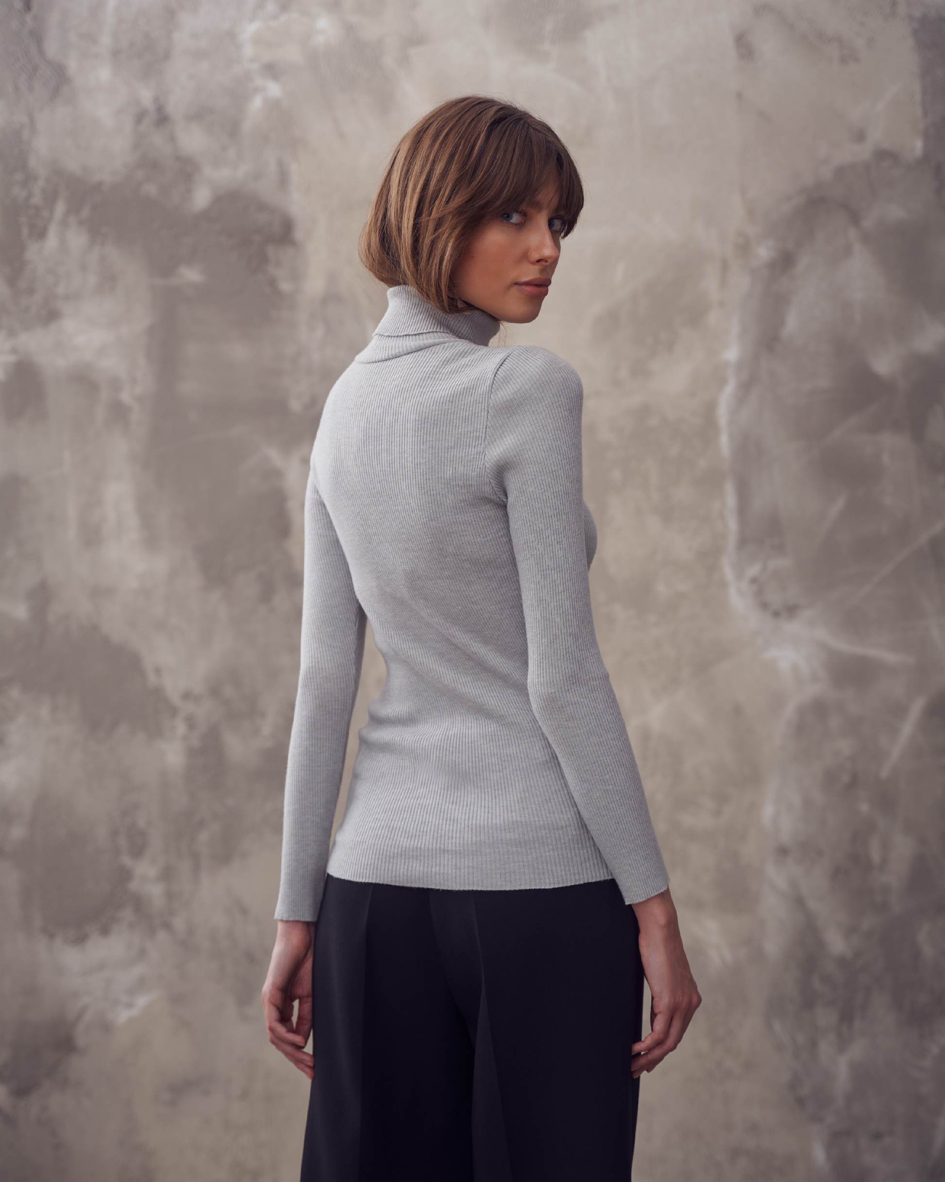 Sign up for our newsletter and get a 10% discount on your purchasesIntroducing our light gray ribbed turtleneck sweater - the epitome of understated elegance and comfort. This model is made of luxurious ribbed viscose fabric, very pleasant to the touch and to the body. The light gray shade of this model will add a timeless character to your wardrobe and create a million possibilities for capsule styling. Whether you're dressing for a casual outing or a more formal event, this sweater will always fit, thanks to its simplicity and sophistication.