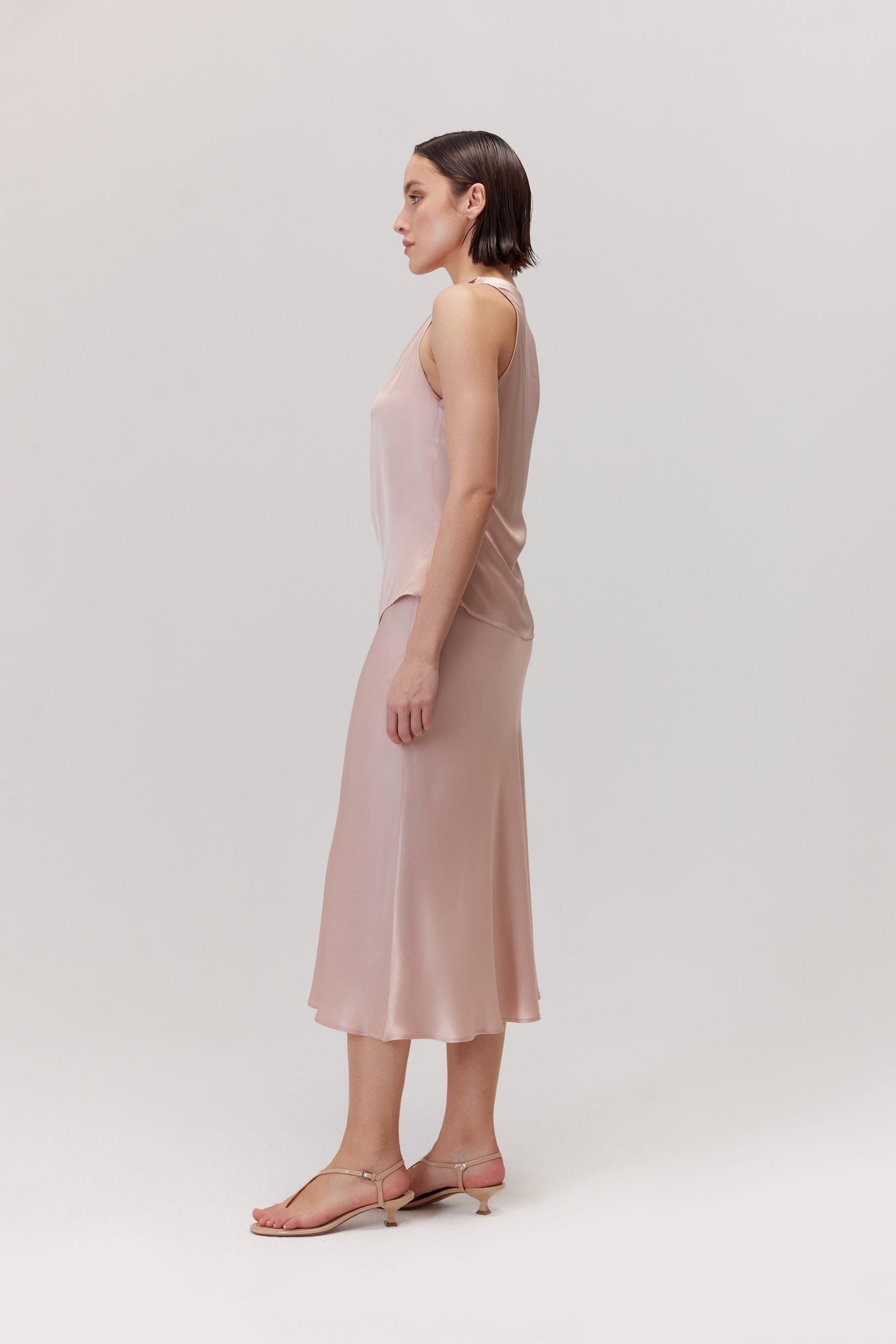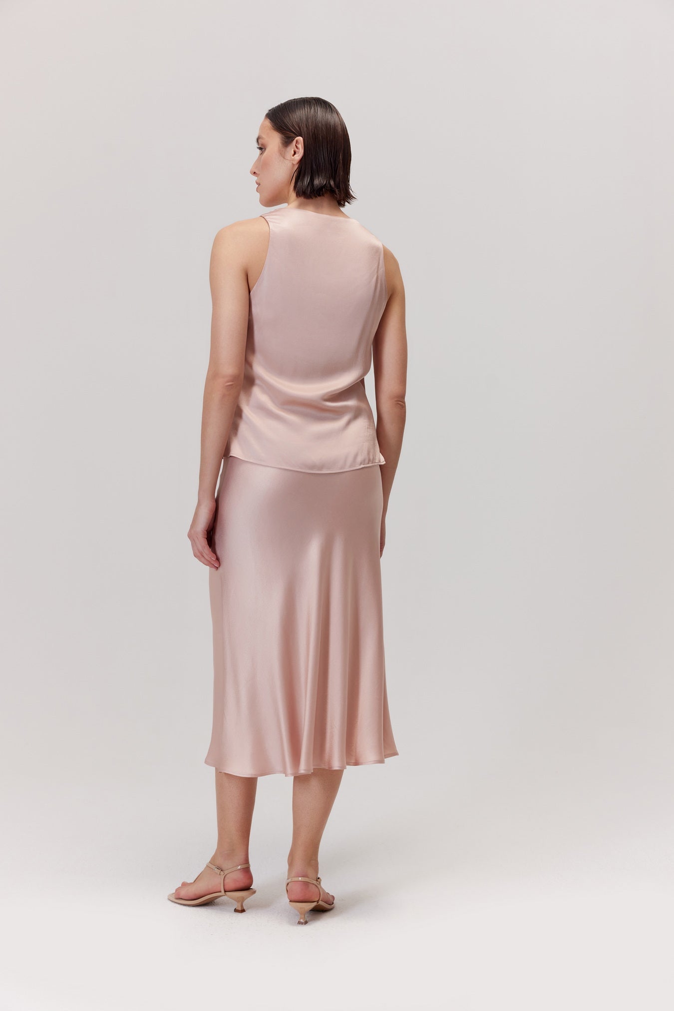 - Lekko rozkloszowany fason typu „bias cut” (cięcie po skosie);