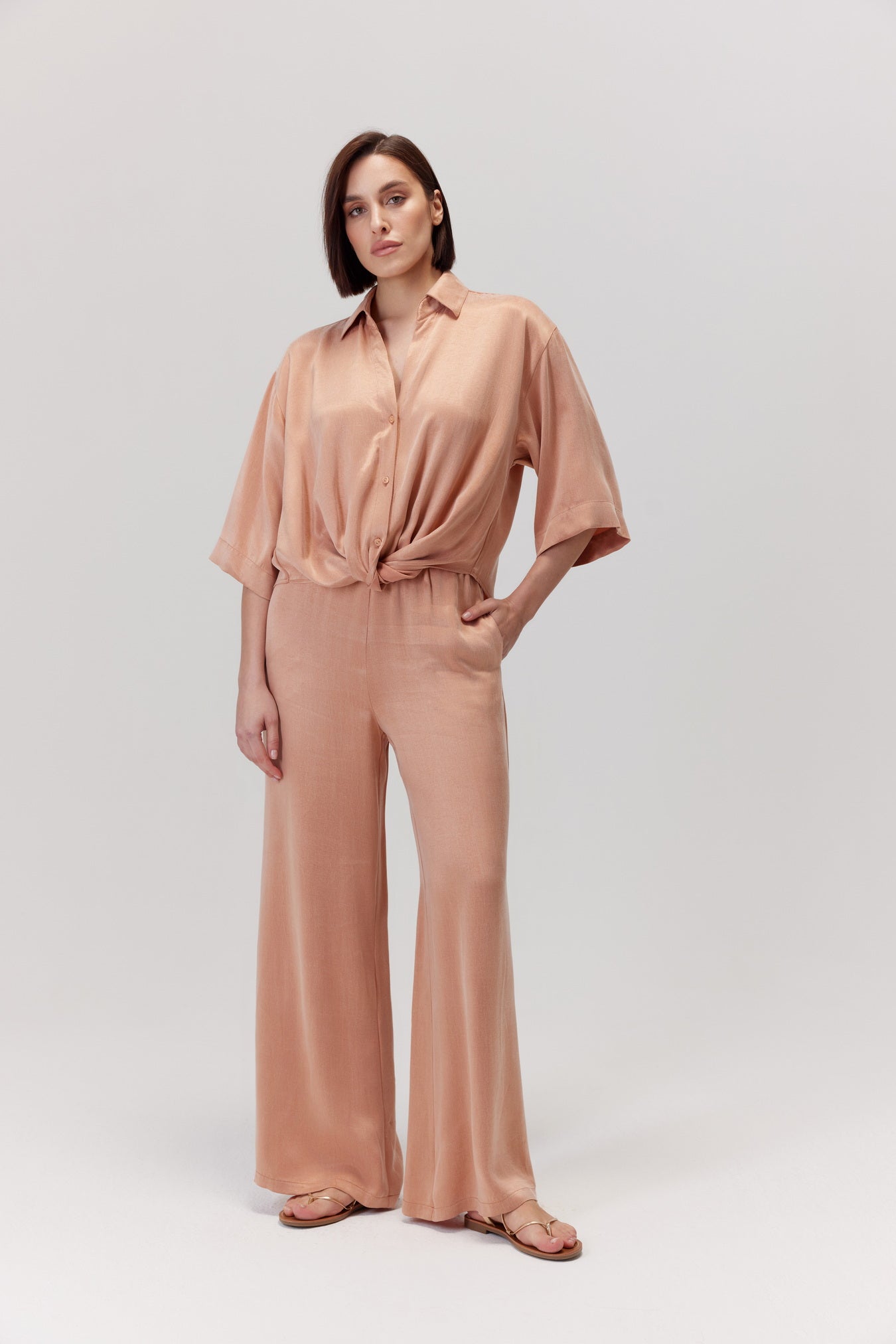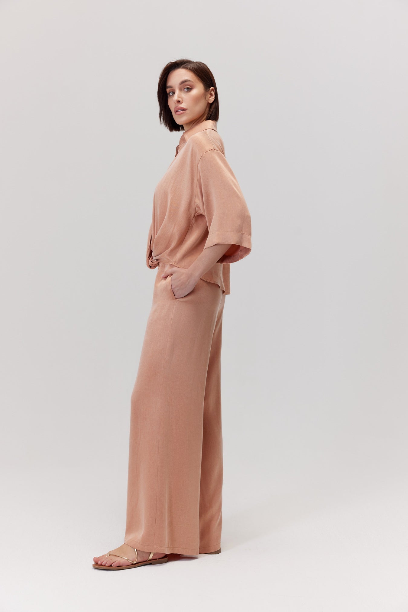 - Spodnie Clove zostały zaprojektowane z myślą o płynności ruchu – szeroka nogawka typu palazzo nadaje im miękki, spokojny rytm;