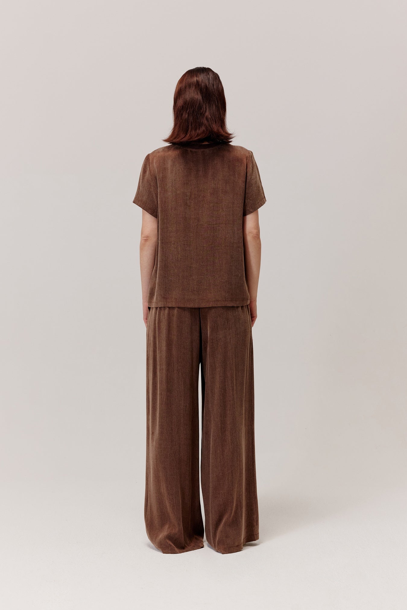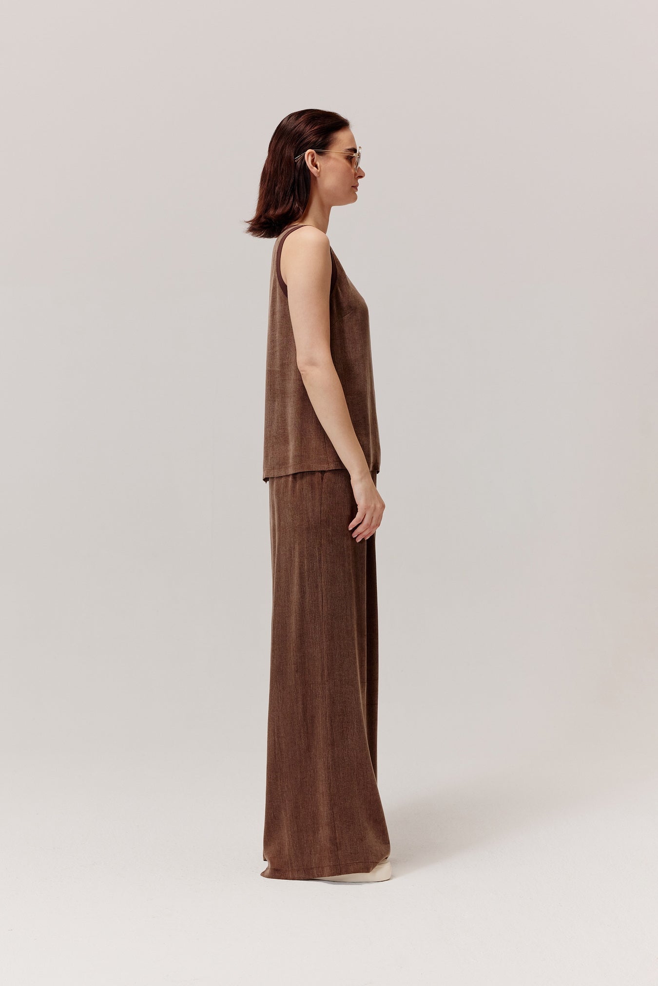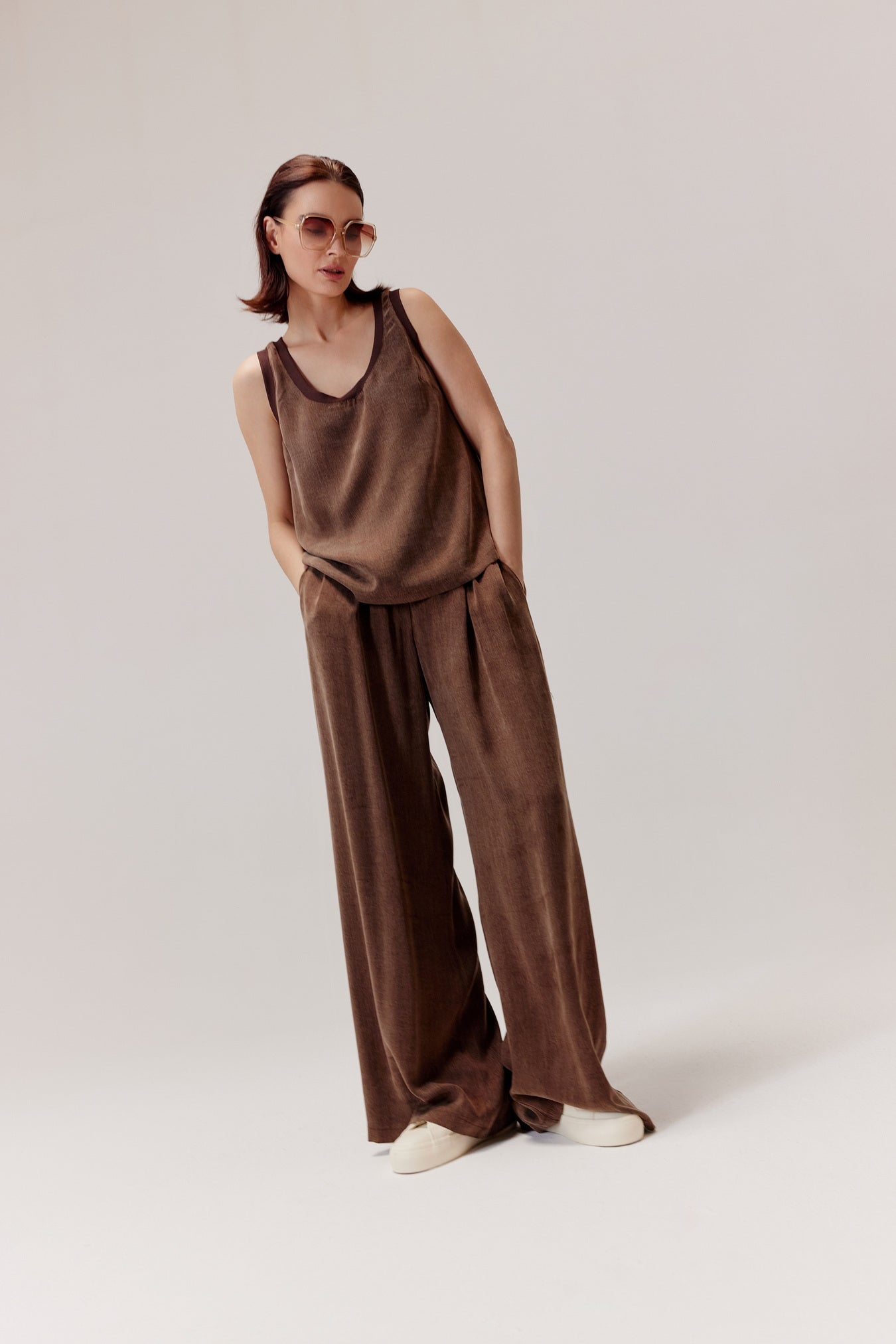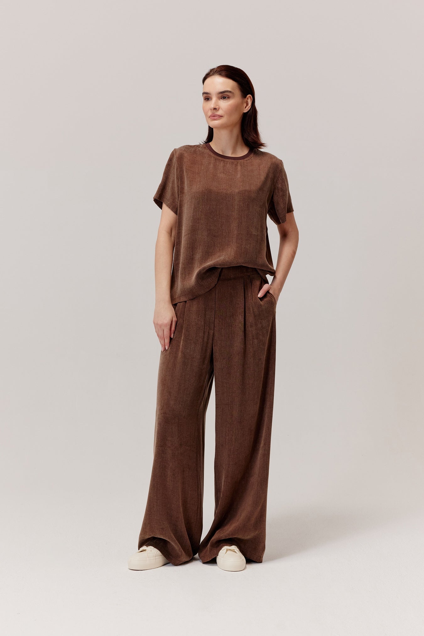 Spodnie z wiskozą i lyocellem Figro brązowe
