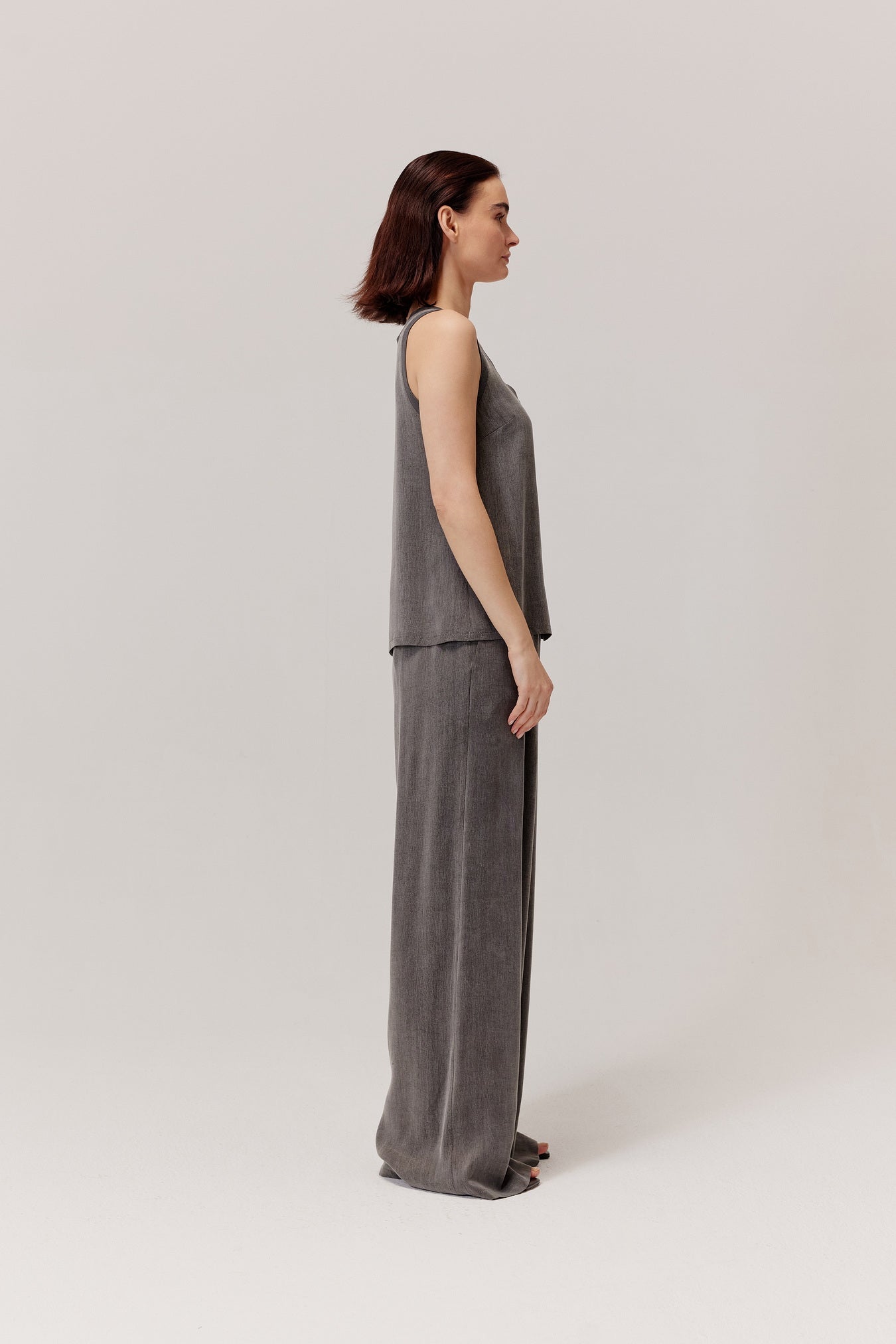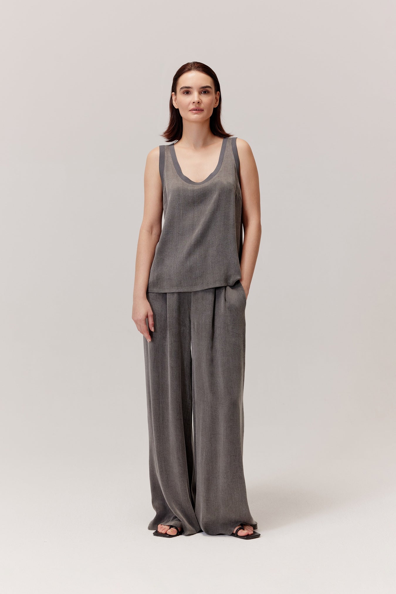Sign up for our newsletter and get a 10% discount on your purchasesZestaw Figro to połączenie minimalistycznego designu ze sportowym wykończeniem, które sprawdzi się zarówno na co dzień, ale i na wyjątkowe wyjścia. W skład kompletu wchodzą: szerokie spodnie, zwiewna bluzka oraz subtelny top, tworząc harmonijną całość idealną.