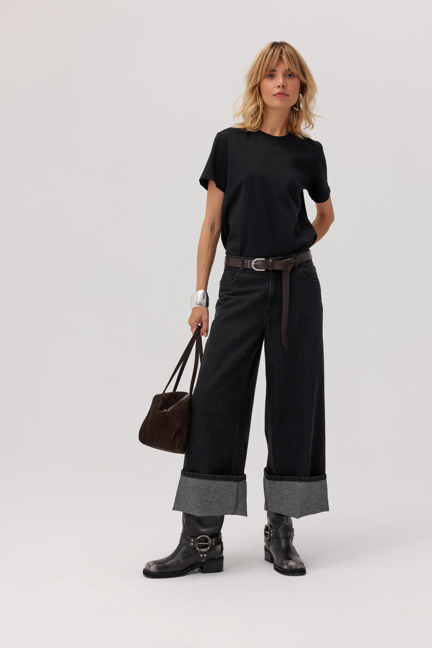 Sign up for our newsletter and get a 10% discount on your purchasesCzarne jeansy Onda to propozycja dla osób ceniących klasykę w nowoczesnym wydaniu. Fason spodni jest szeroki, lekko rozszerzany ku dołowi, co gwarantuje wygodę oraz podkreśla stylowy, swobodny look. Regularna talia, klasyczne przeszycia i metalowy guzik z logo Anataki dodają im charakteru. Model posiada klasyczne kieszenie z przodu i z tyłu oraz szlufki na pasek,