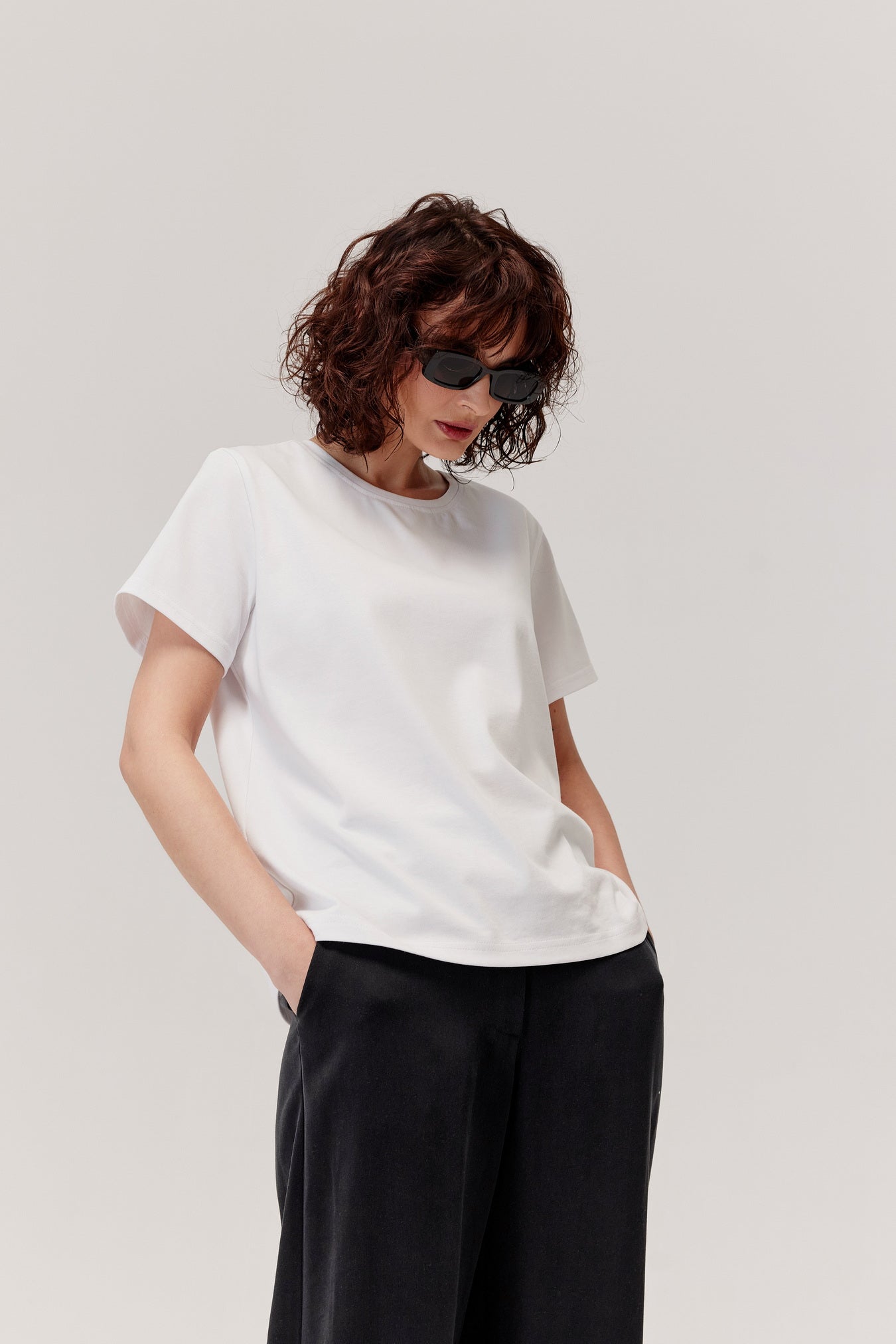 - klasyczny t-shirt, który można dopasować do różnych stylizacji – od casualowych po bardziej eleganckie