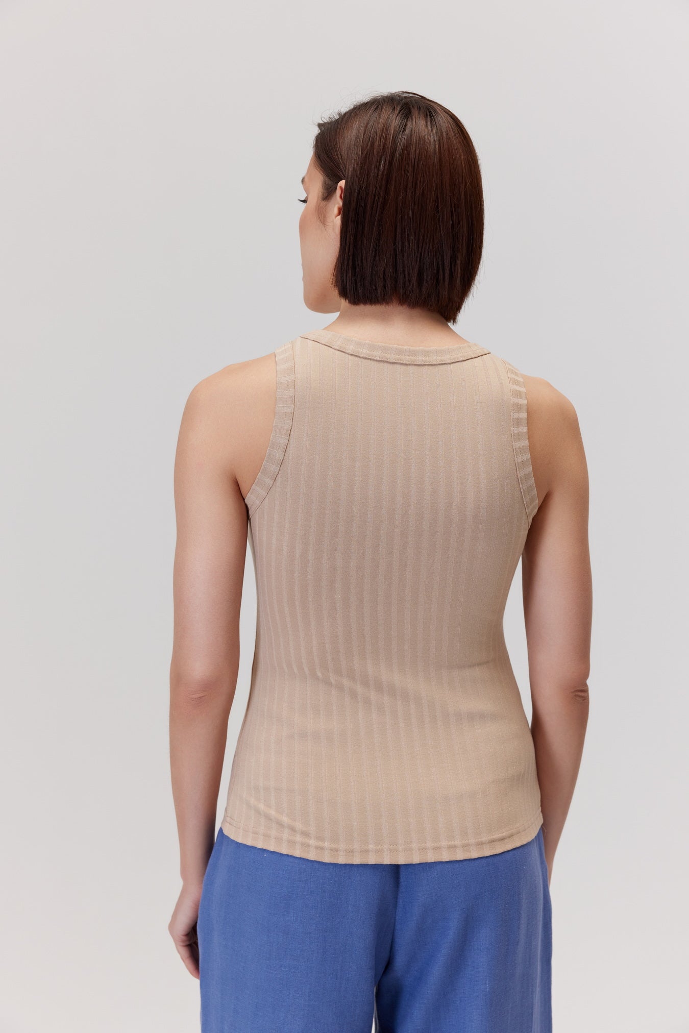- Kolor: beżowy — uniwersalny i neutralny łatwo łączy się z innymi elementami garderoby.