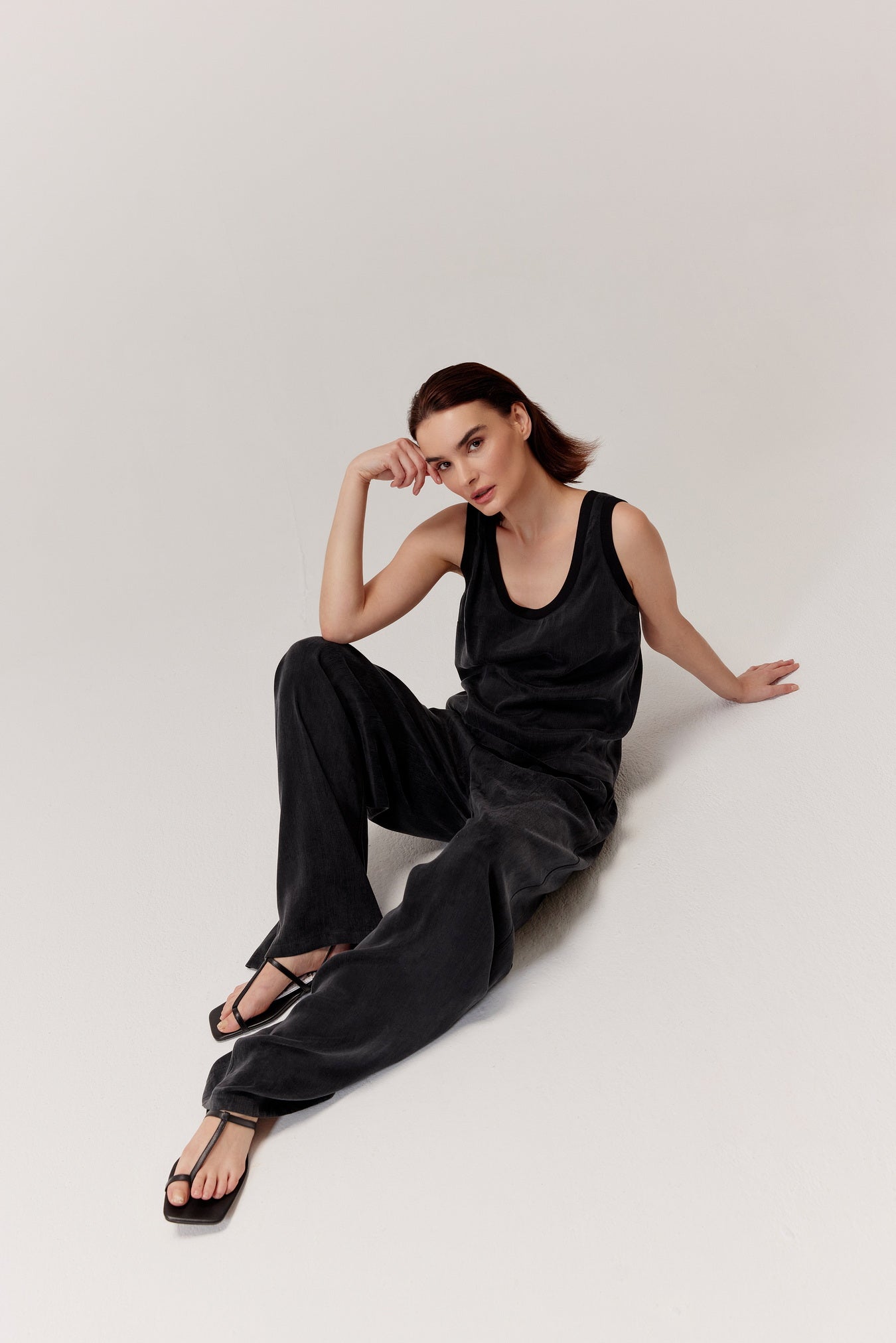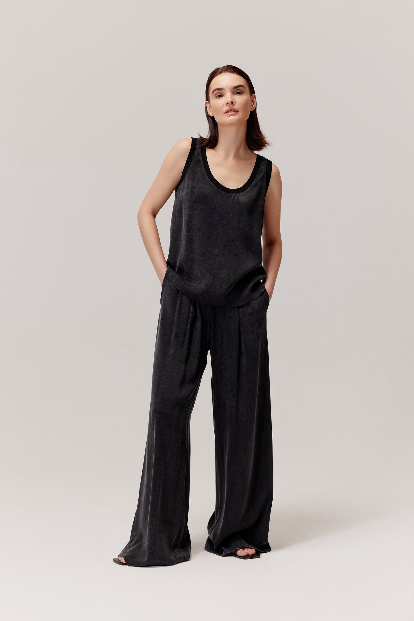 Sign up for our newsletter and get a 10% discount on your purchasesZestaw Figro to połączenie minimalistycznego designu ze sportowym wykończeniem, które sprawdzi się zarówno na co dzień, ale i na wyjątkowe wyjścia. W skład kompletu wchodzą: szerokie spodnie, zwiewna bluzka oraz subtelny top, tworząc harmonijną całość idealną.