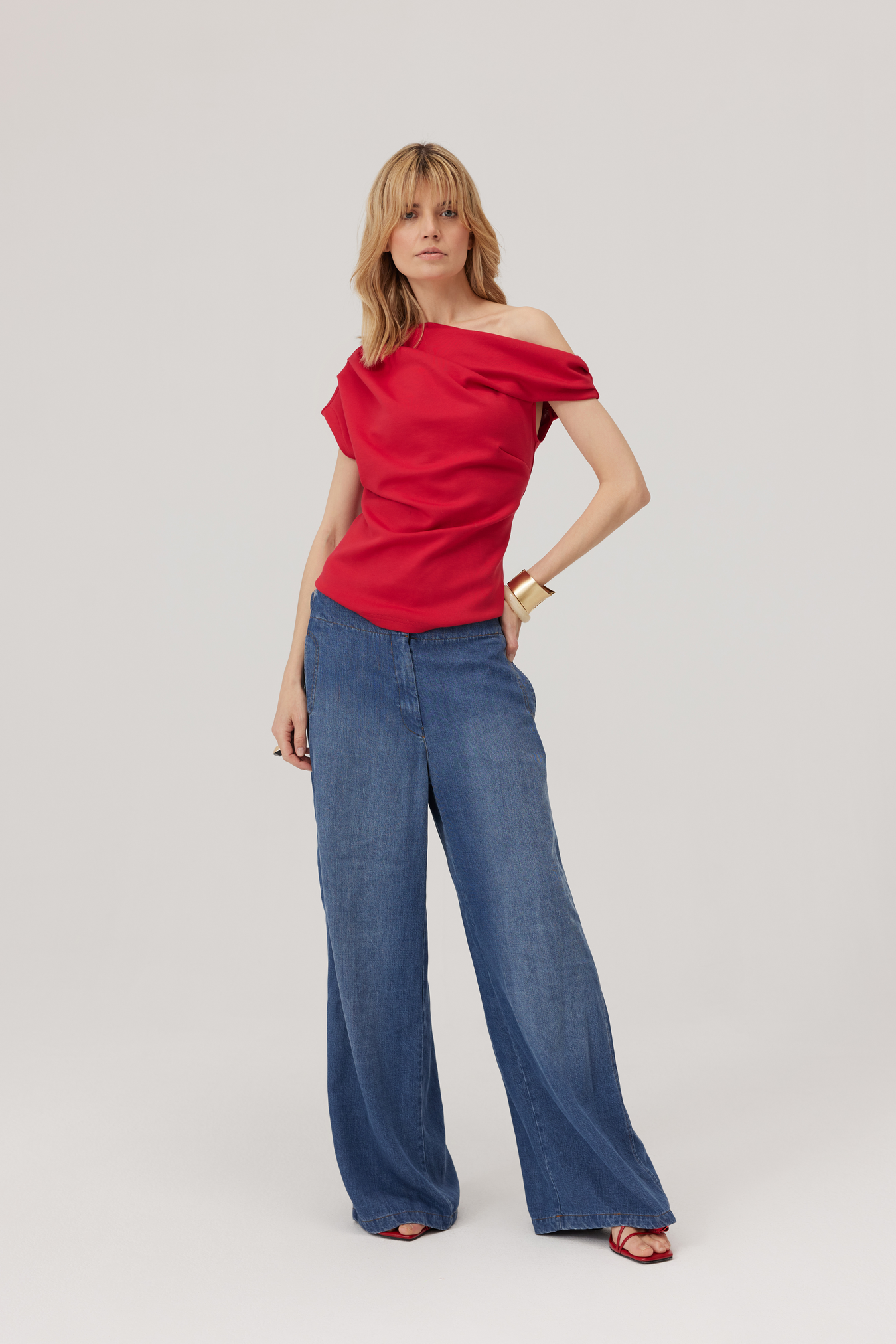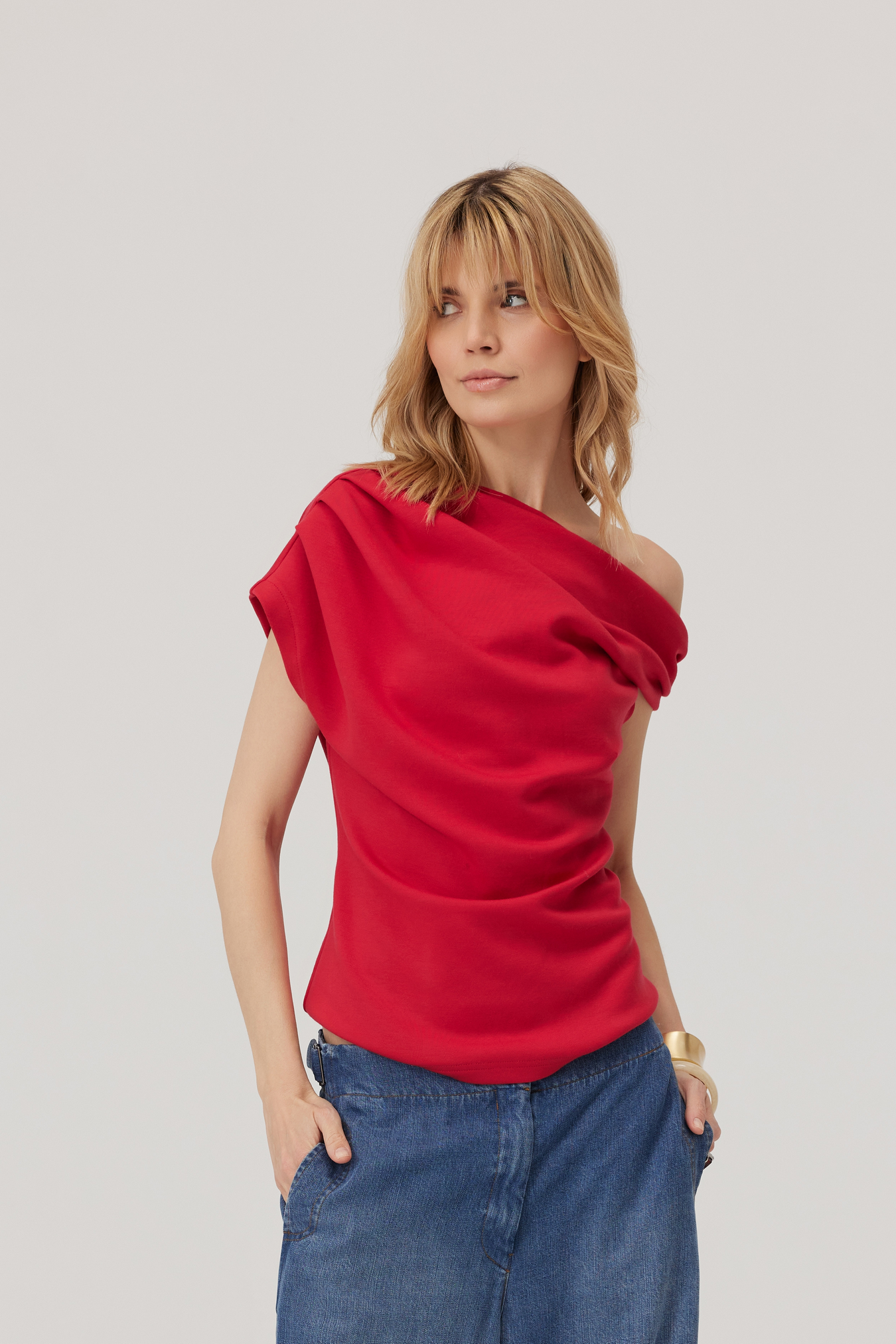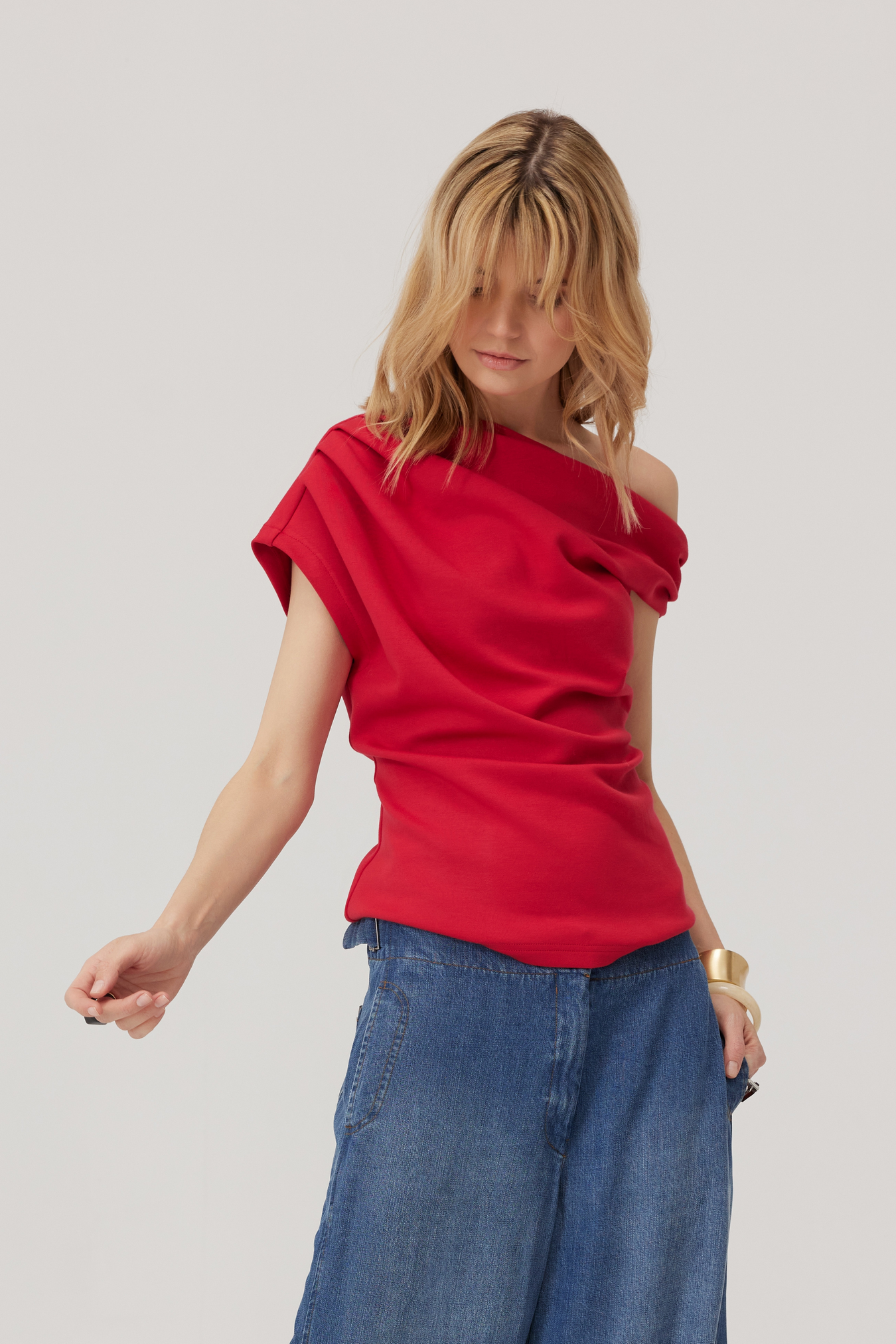 Sign up for our newsletter and get a 10% discount on your purchasesTop Heartbreaker to asymetryczna forma z wyraźnie odsłoniętym ramieniem i skośną linią po jednej stronie. Dekolt układa się po przekątnej, a marszczenia miękko zbierają materiał wzdłuż boku.