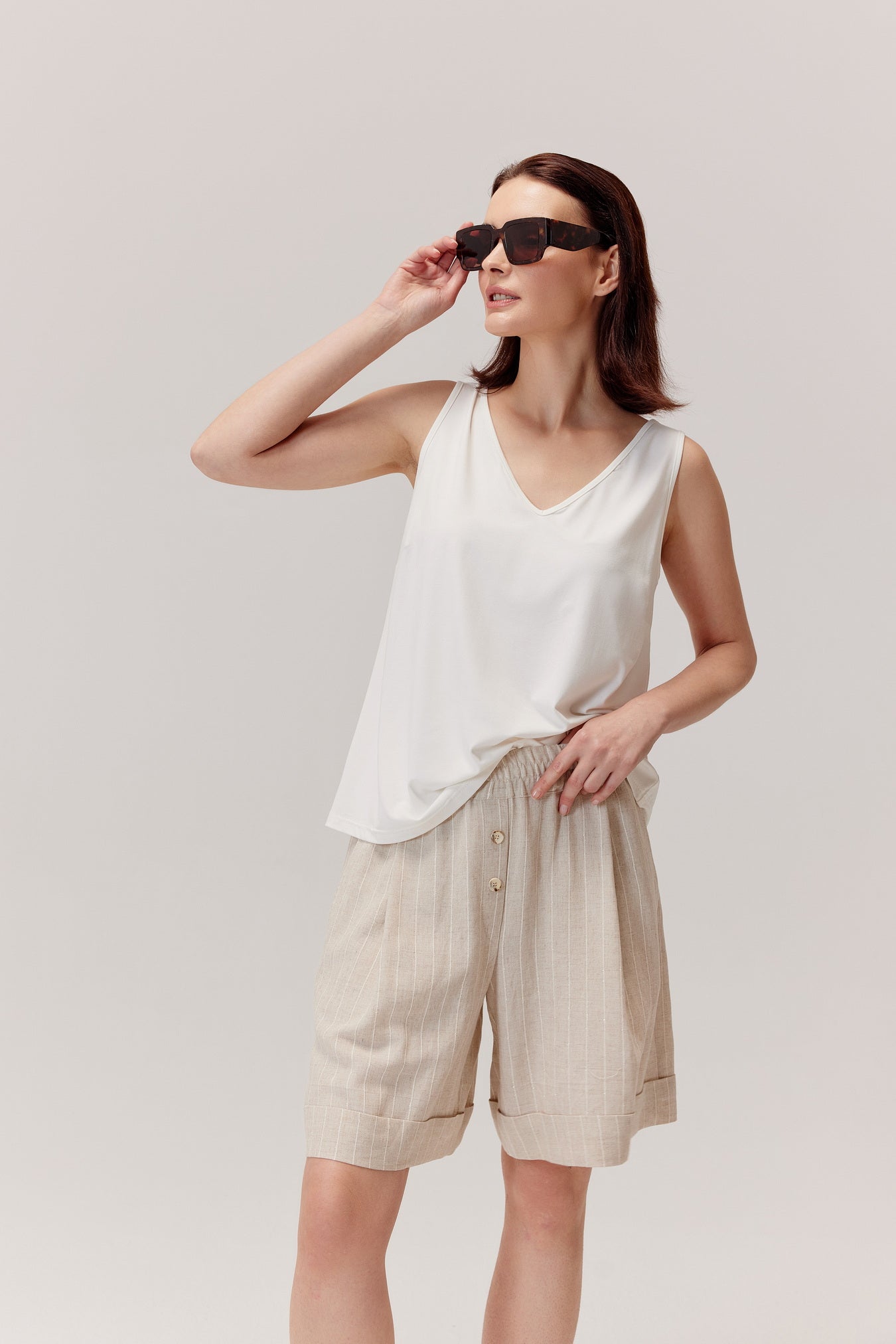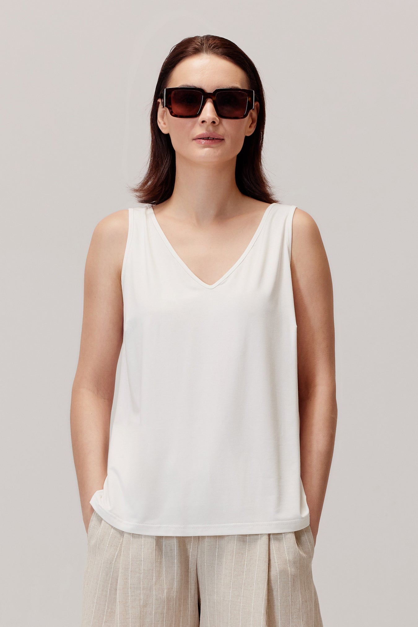 - Komfort: Dzianina wiskozowa zapewnia lekkość i oddychalność, co sprawia, że top jest przyjemny do noszenia w różnych warunkach.