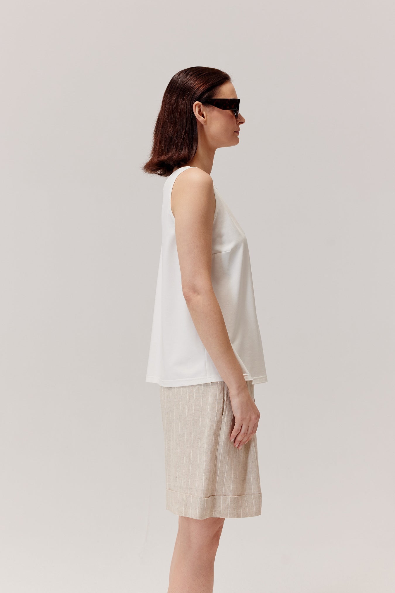 - Bez rękawów — idealny wybór na ciepłe dni lub do noszenia pod swetry i marynarki;