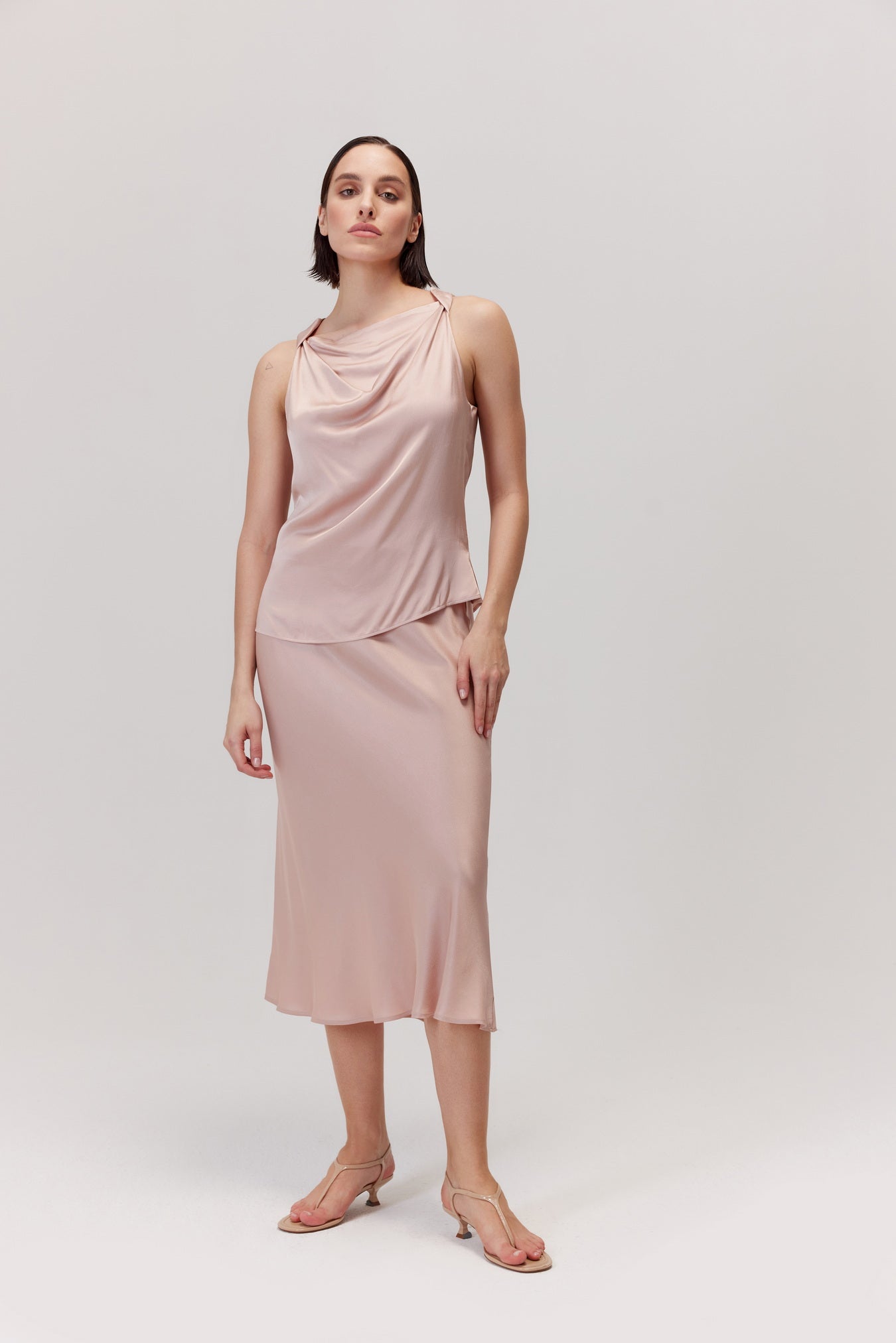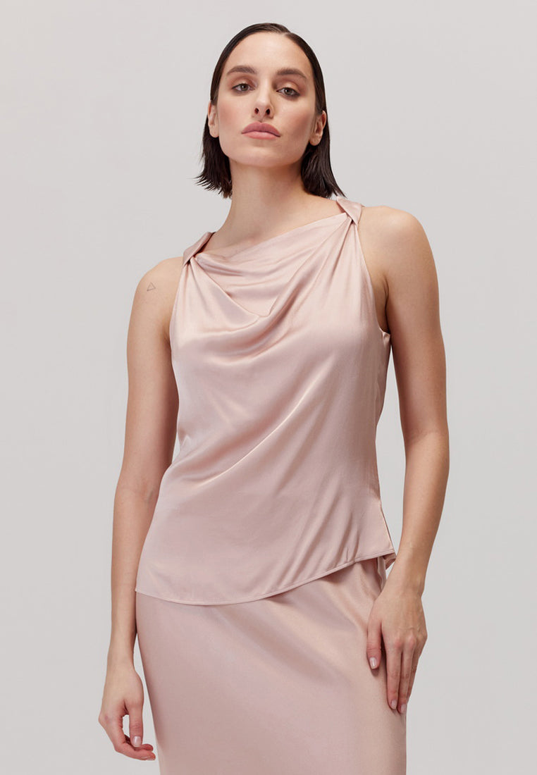 - Bluzka z satynowej wiskozy w kolorze pudrowego różu;