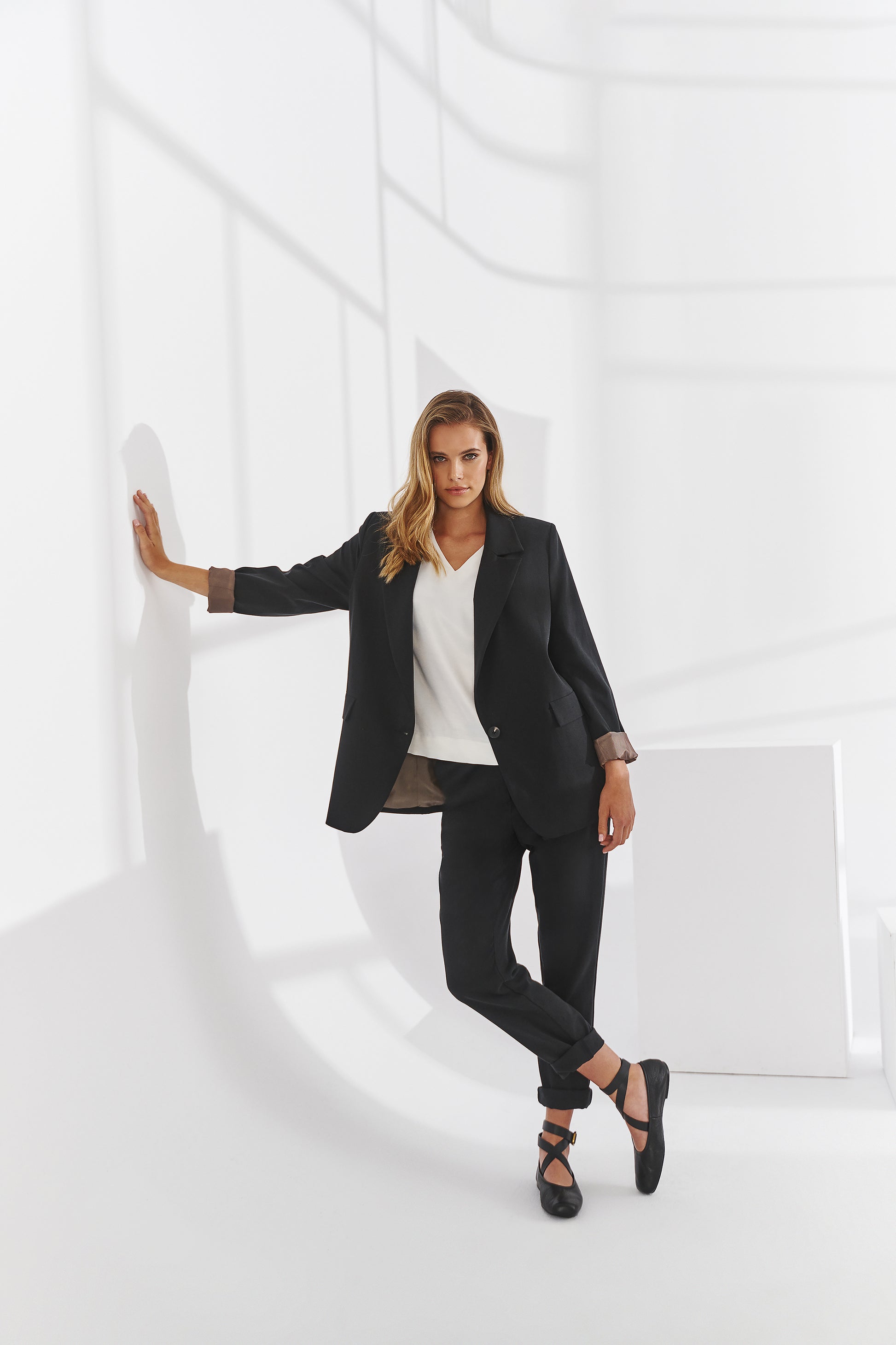 Composition: Fabric: 65% lyocell, 35% cotton; Lining: 100% acetate