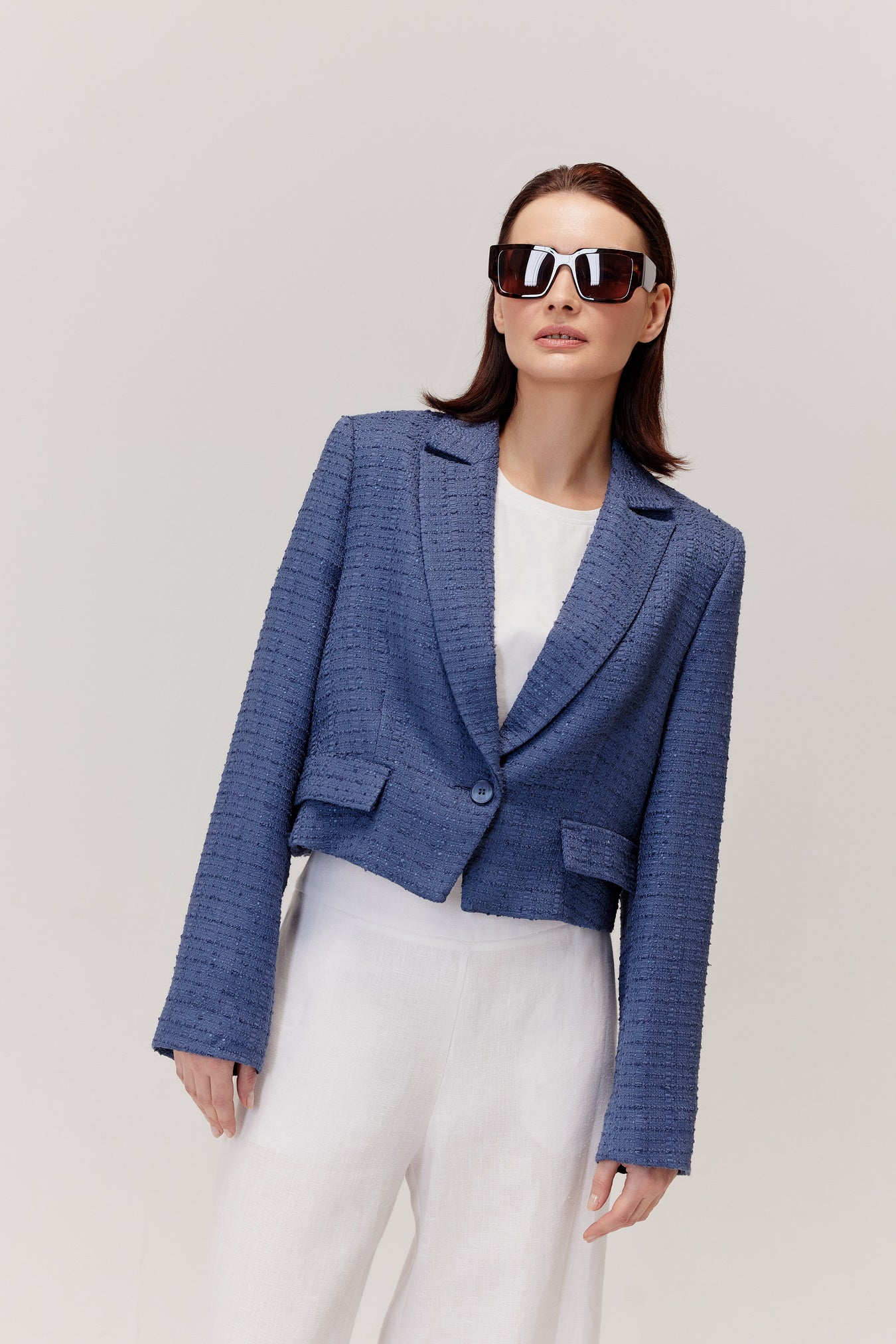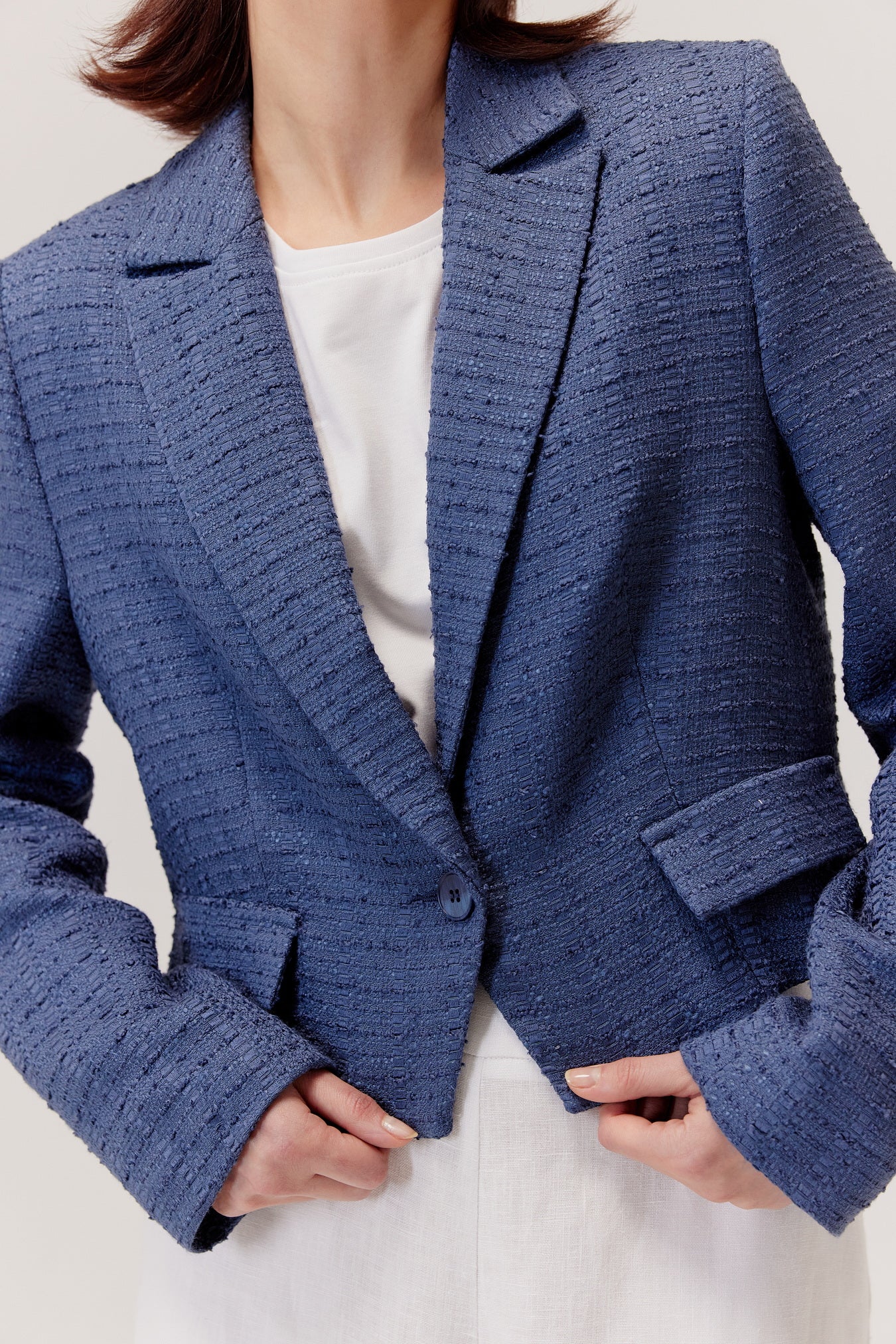 - jednorzędowe zapięcie na guzik, podkreśla minimalistyczny charakter żakietu,