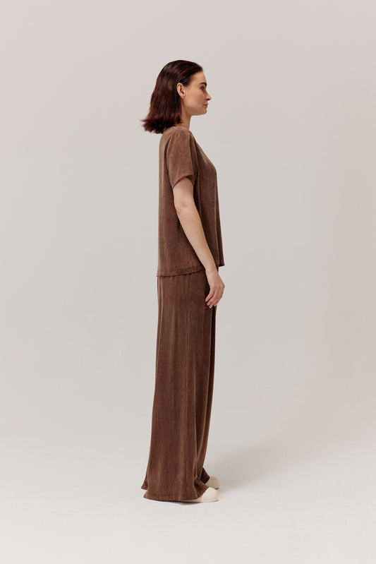 Bluzka z wiskozą i lyocellem Figro brązowa
