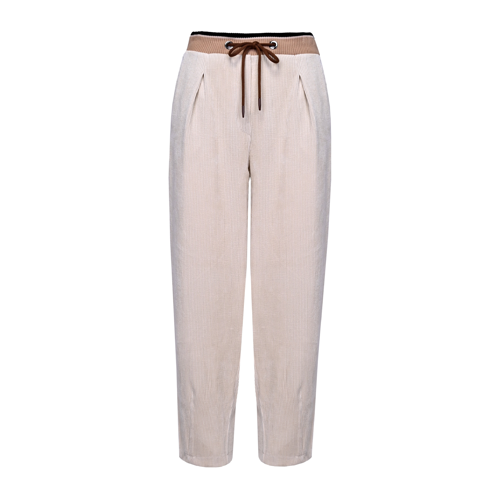 Inscrivez-vous à notre newsletter et obtenez une remise de 10% sur vos achatsPantalon ample en velours c™telŽ. Les jambes ont une largeur tr�s tendance - nous les avons lŽg�rement froncŽes en bas pour que vous puissiez les retrousser nonchalamment - nous recommandons ! Nous les avons confectionnŽs dans un tissu ˆ rayures plus larges, dans une ŽlŽgante teinte beige sable. Nous avons utilisŽ une taille haute, des plis ˆ la taille et dans le dos - des rabats imitant les poches, gr‰ce auxquels le pantalon s'ajuste tr�s bien. Au niveau de la taille, nous avons un cordon tricotŽ contrastŽ miel et noir avec cordon de serrage, vous permettant de l'ajuster ˆ votre silhouette.