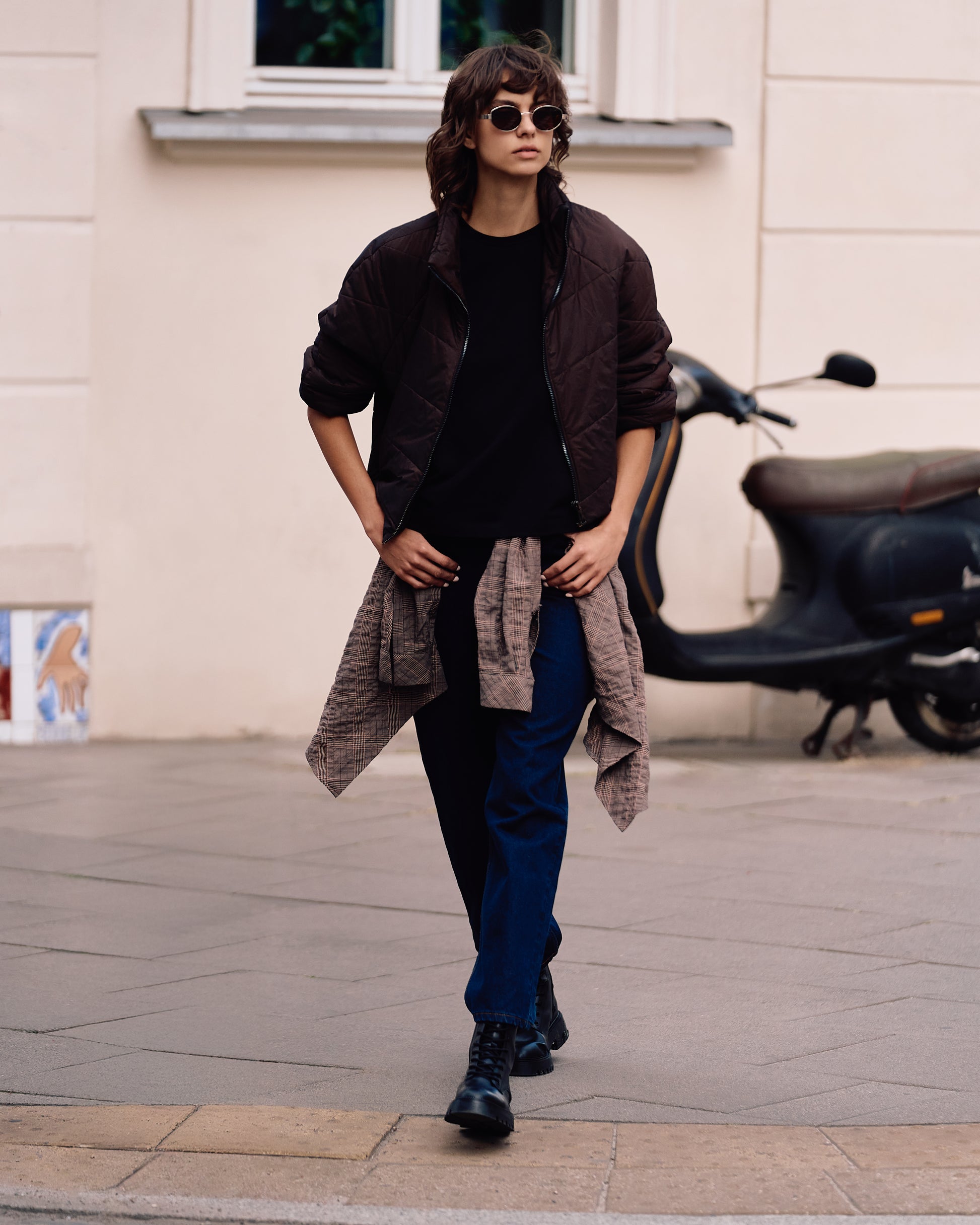 Luźniejszy fason świetnie współgra z grubym swetrem czy golfem. To wszechstronny model na co dzień: lekki, wygodny i łatwy do zestawienia z jeansami, spódnicą midi lub sukienką