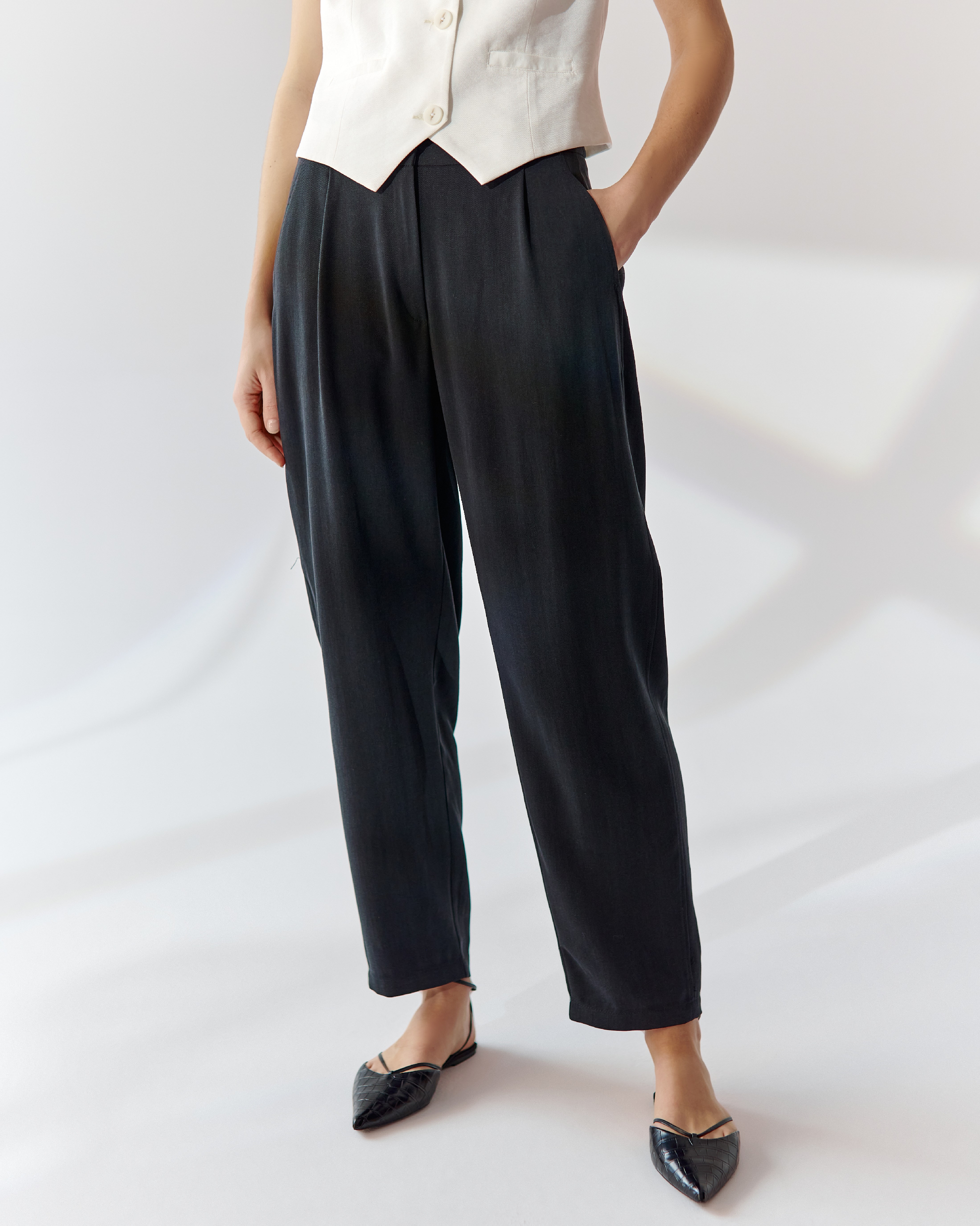 La coupe classique et universelle du pantalon le rend facile à combiner avec différents hauts et chemisiers. Que vous vous habilliez pour le bureau, un événement spécial ou une soirée, ce pantalon de costume offre un look raffiné. Fabriqué en lyocell de haute qualité, le pantalon met non seulement en valeur la silhouette, mais offre également un confort tout au long de la journée.ÊÊFaites impression avec des pantalons qui complètent sans effort votre garde-robe.