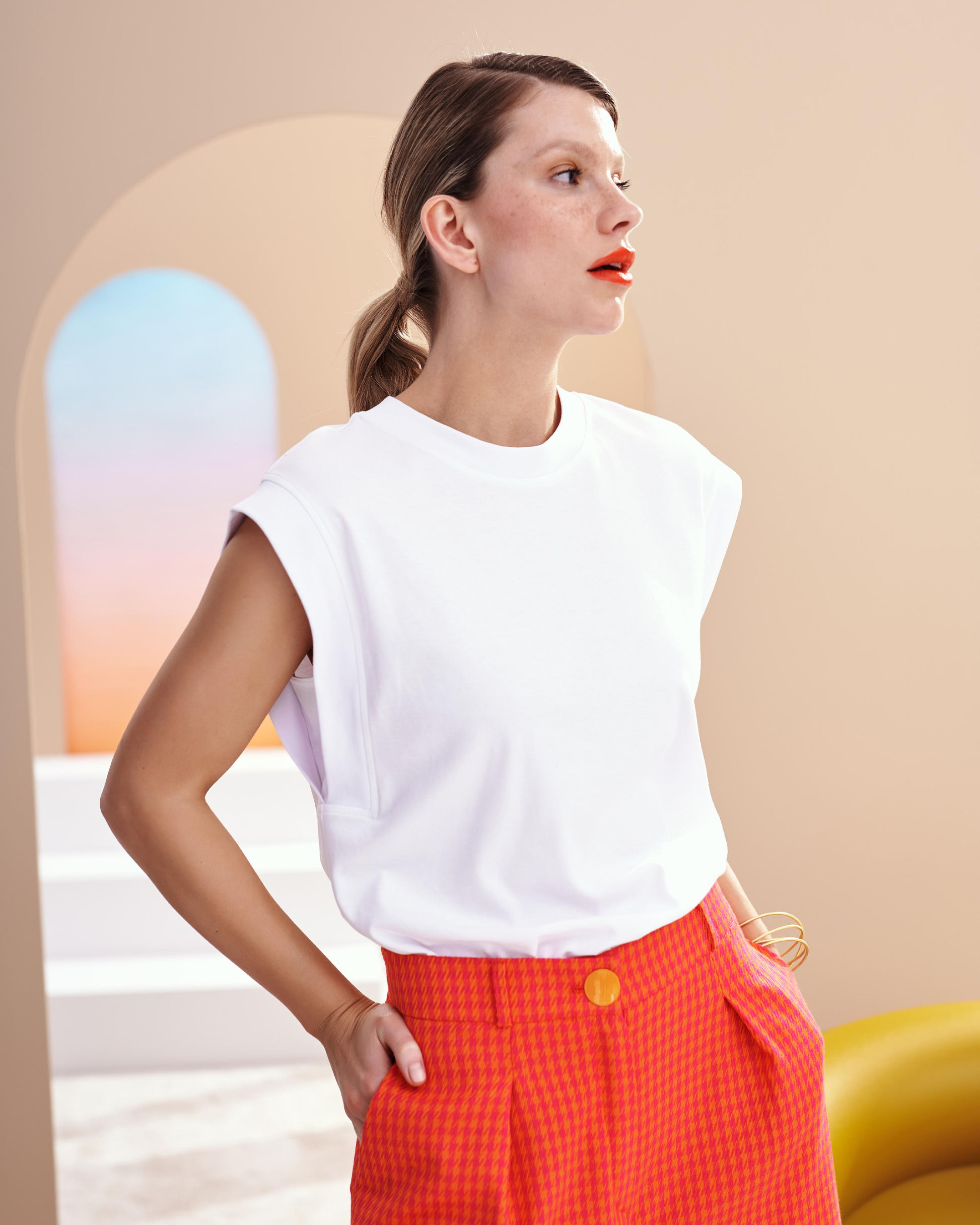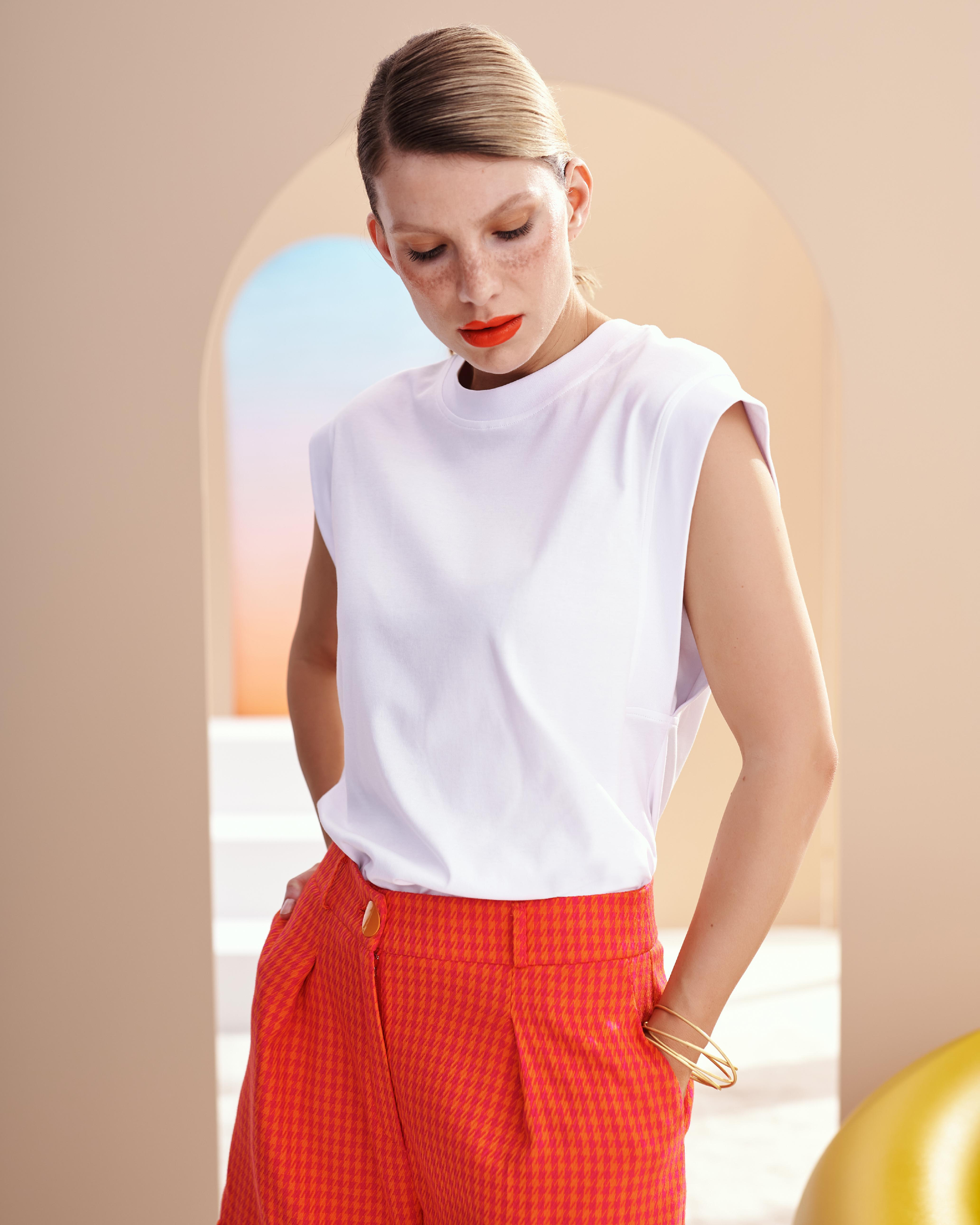 La blouse Roni est un rŽgal pour les adeptes des astuces de mode. Sa coupe non standard aux Žpaules Žlargies permet de profiler votre silhouette. Son caract�re fait rŽfŽrence au style des annŽes 80 et se marie parfaitement avec les shorts, par exemple Veber, de notre collection.