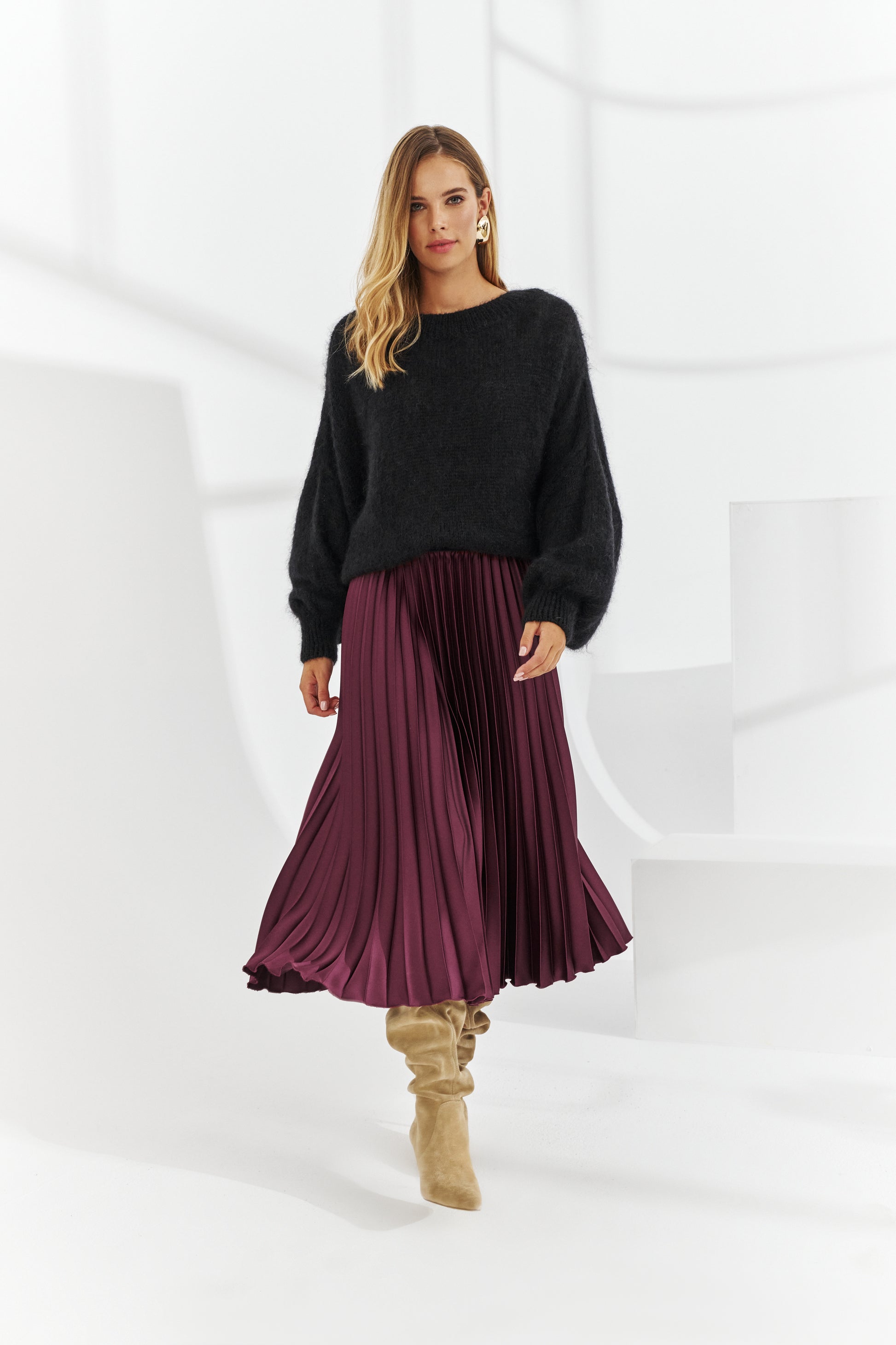 - Longueur : le midi est la longueur la plus universelle des jupes plissées.