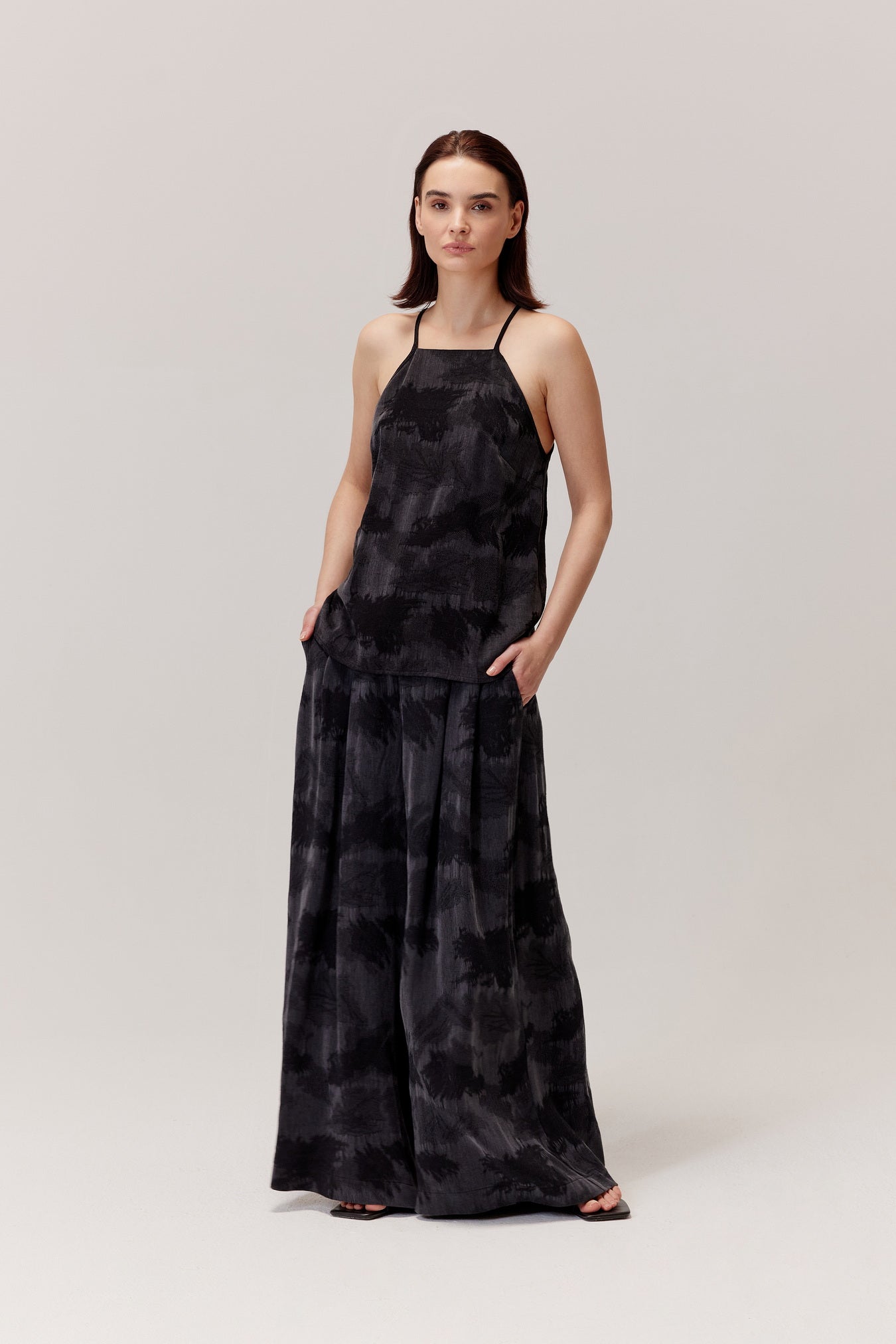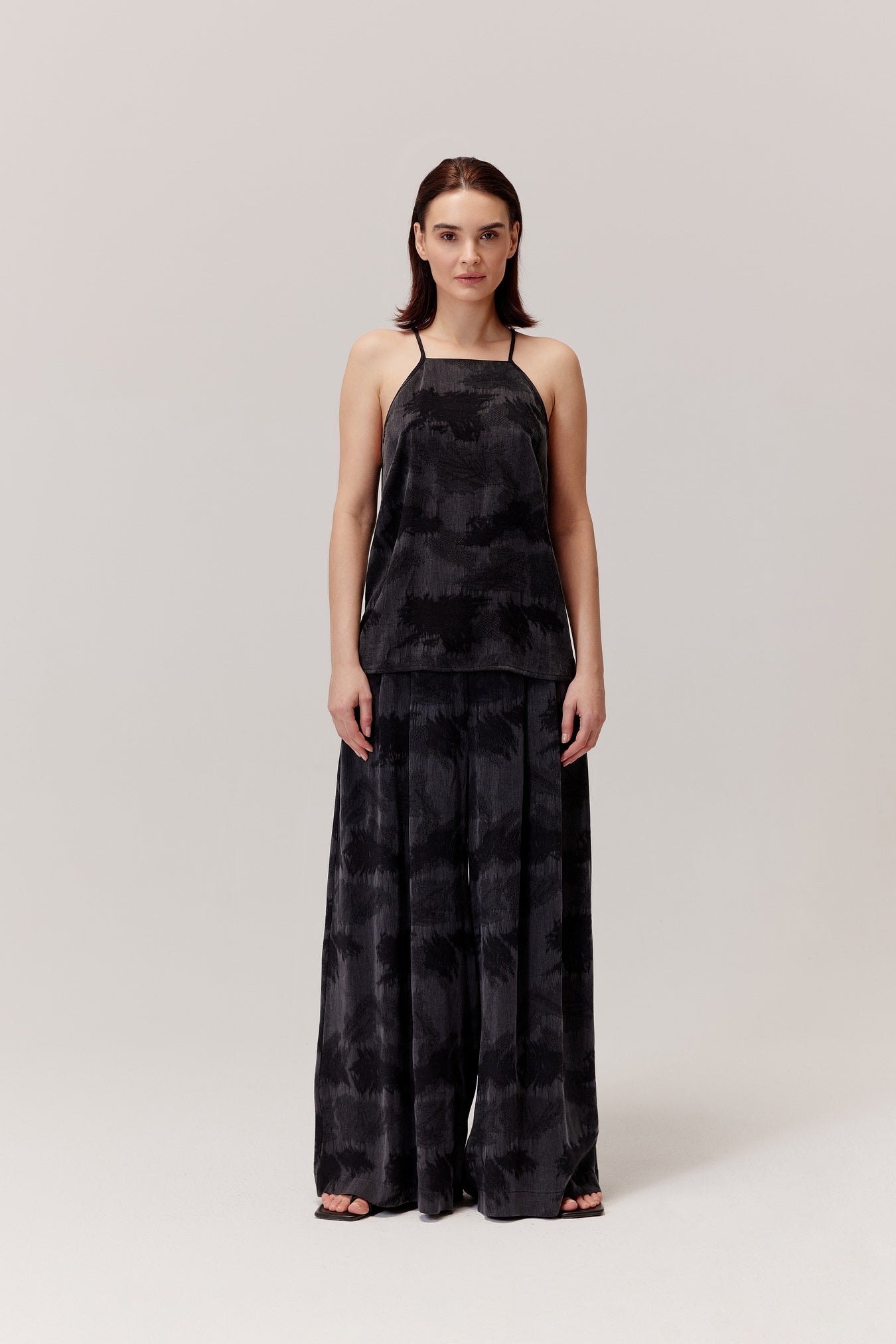 Kolor: Unikalny wzór tie-dye w odcieniach szarości i czerni, przypominający abstrakcyjne kwiatowe motywy.