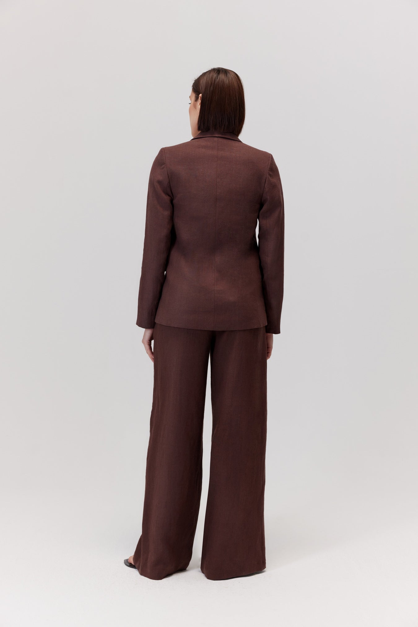 - Zestawione z żakietem z tej samej serii tworzą wyrazisty, monochromatyczny komplet w estetyce współczesnego power dressing w wersji soft;