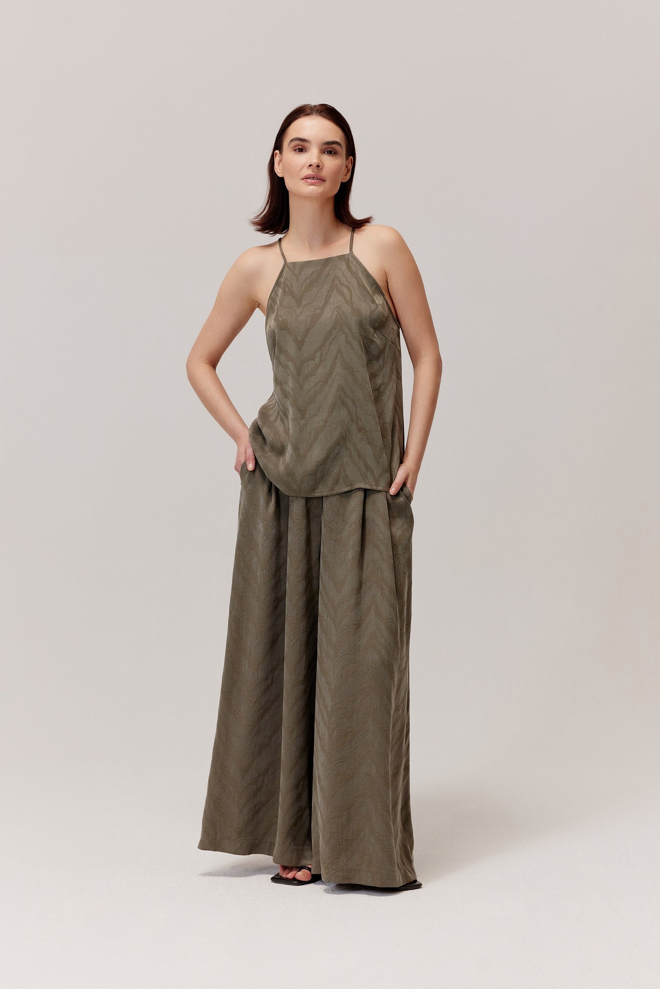 Inscrivez-vous à notre newsletter et obtenez une remise de 10% sur vos achatsOdkryj kwintesencję swobodnego szyku w naszym zestawie Flam, składającym się z lekkiego topu na ramiączkach i zwiewnych spodni palazzo. Ten wyjątkowy komplet emanuje subtelną grą cieni i nowoczesną nonszalancją.