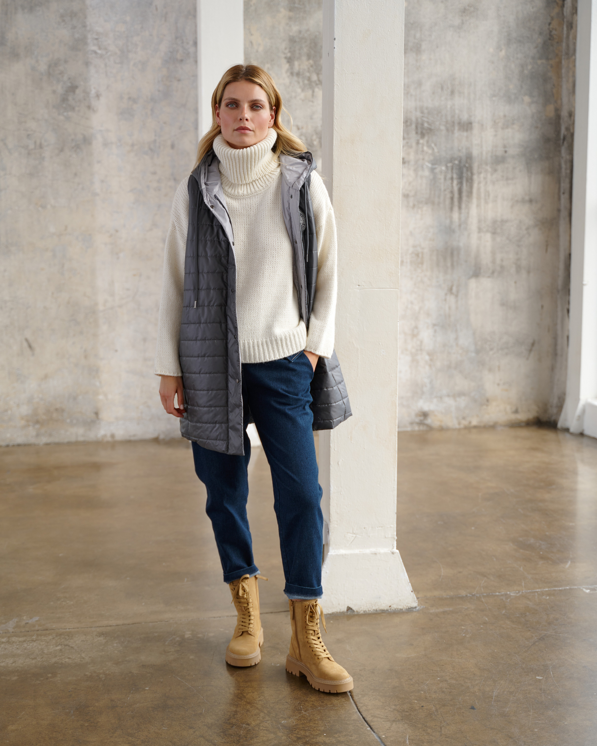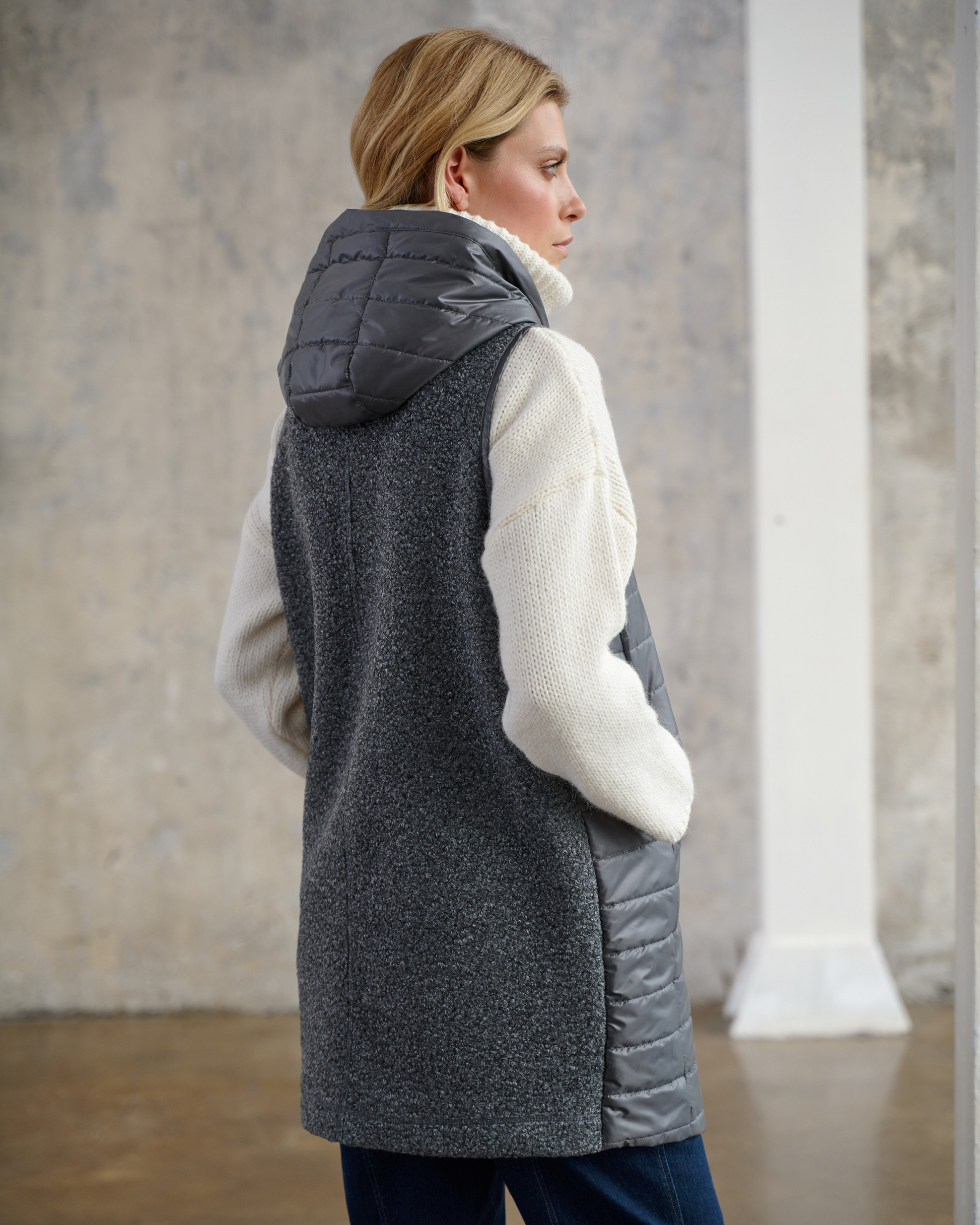 Zapisz się do newslettera i zyskaj 10% rabatu na zakupyKamizelka z klasą "Teddy" to idealny wybór na jesienną aurę. W w grafitowym odcieniu szarości ze srebrzystą podszewką. W długości midi do połowy uda. Postawiliśmy na wygodny i optymalny w wielkości kaptur, który ma funkcję nie tylko ozdobną. Kamizelka jest ciepła i idealnie pasuje do naszych dresów. Polecamy szczególnie w zestawie z modelem Comfort.