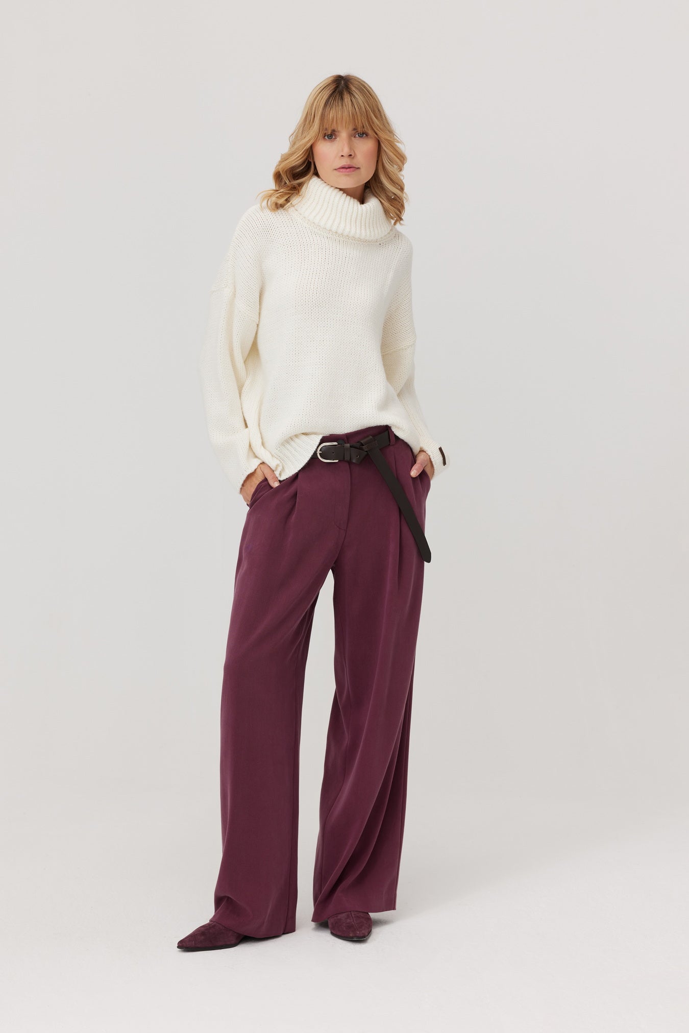 Zapisz się do newslettera i zyskaj 10% rabatu na zakupySweter Oven z mieszanki moheru i wełny to nowoczesne spojrzenie na klasykę z nutą zmysłowości. Luźny fason z szerokim golfem i efektowne głębokie wycięcie na plecach sprawia, że ten model wyróżni każdą stylizację. Idealny zarówno do szerokich spodni, jak i ulubionych jeansów – to propozycja dla kobiet, które cenią wygodę, odważne detale i ponadczasową paletę barw.