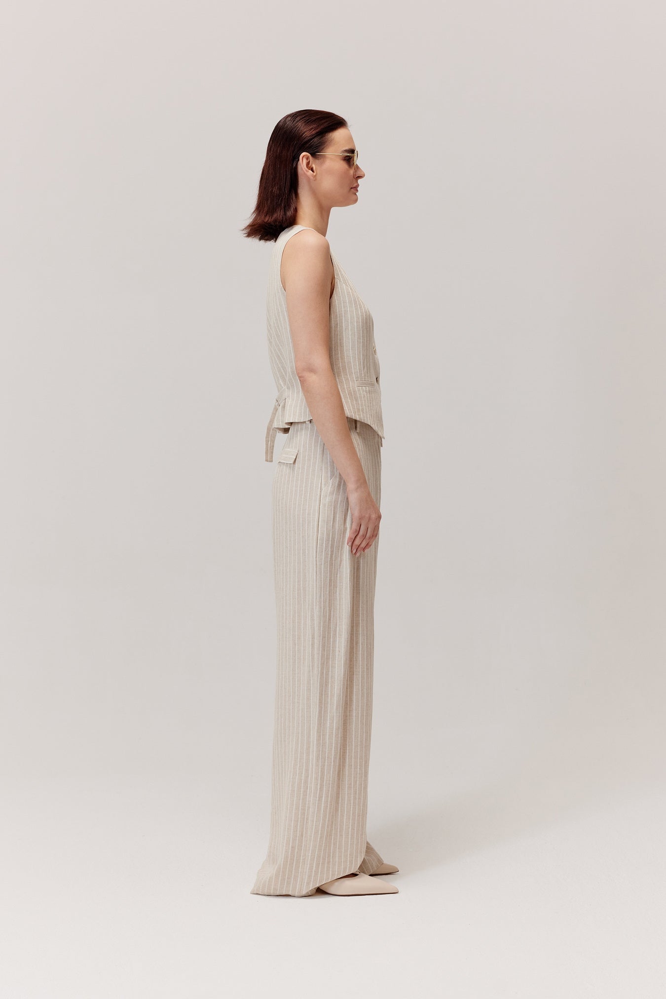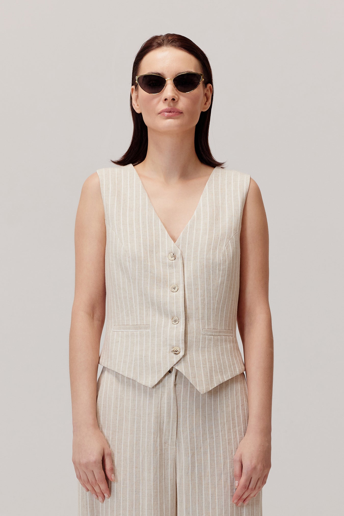 Kamizelka z wiskozą i lnem Sigma beżowa