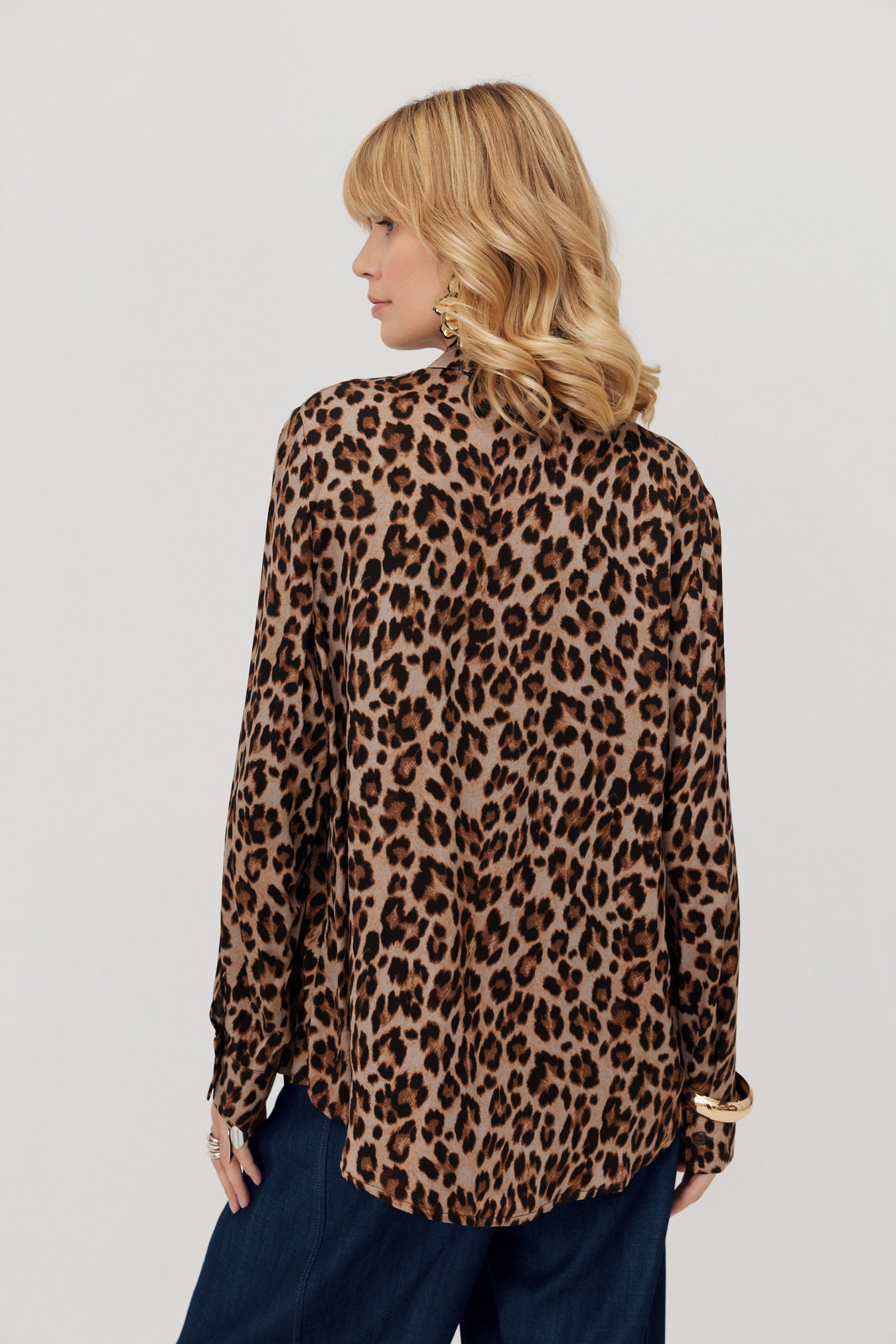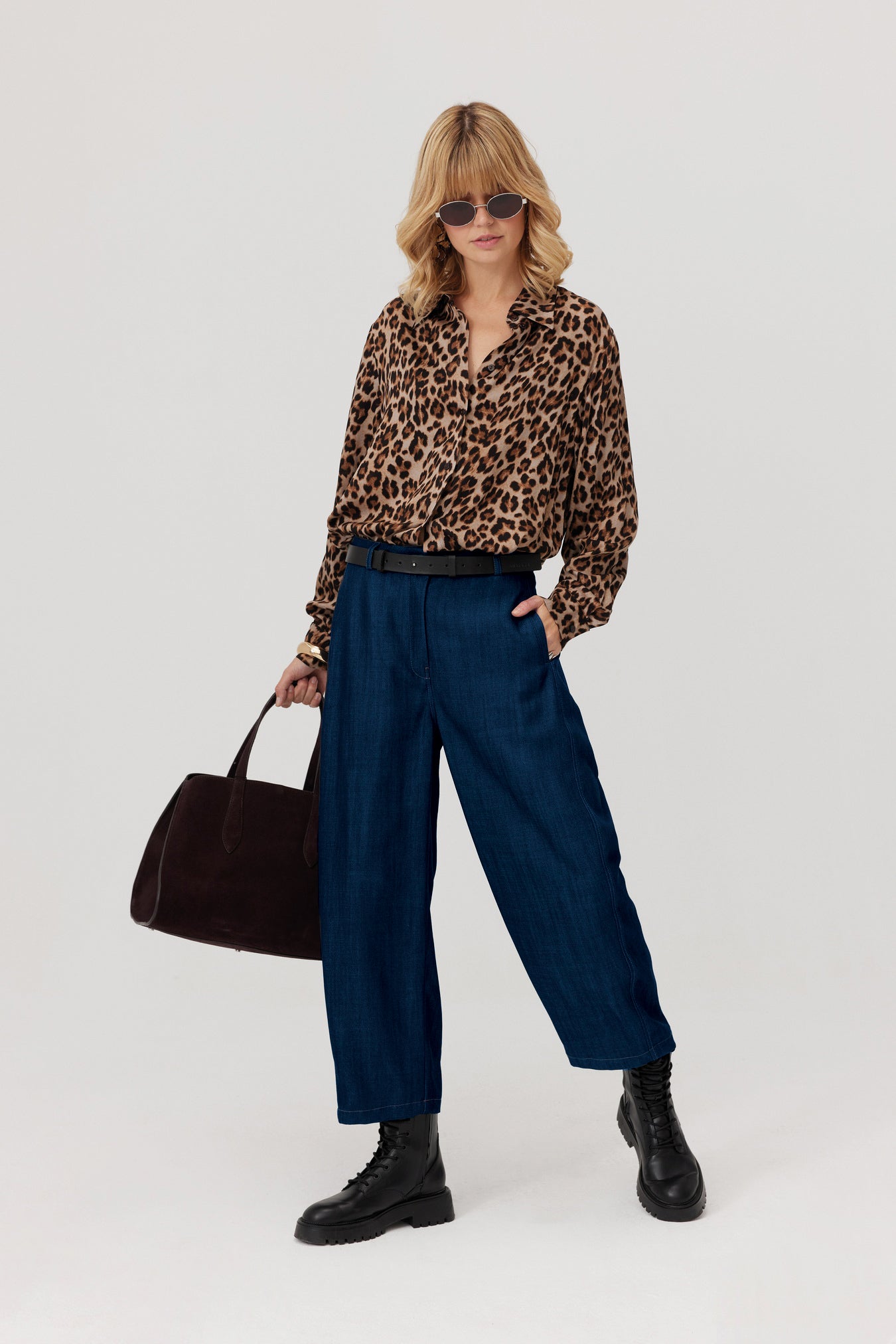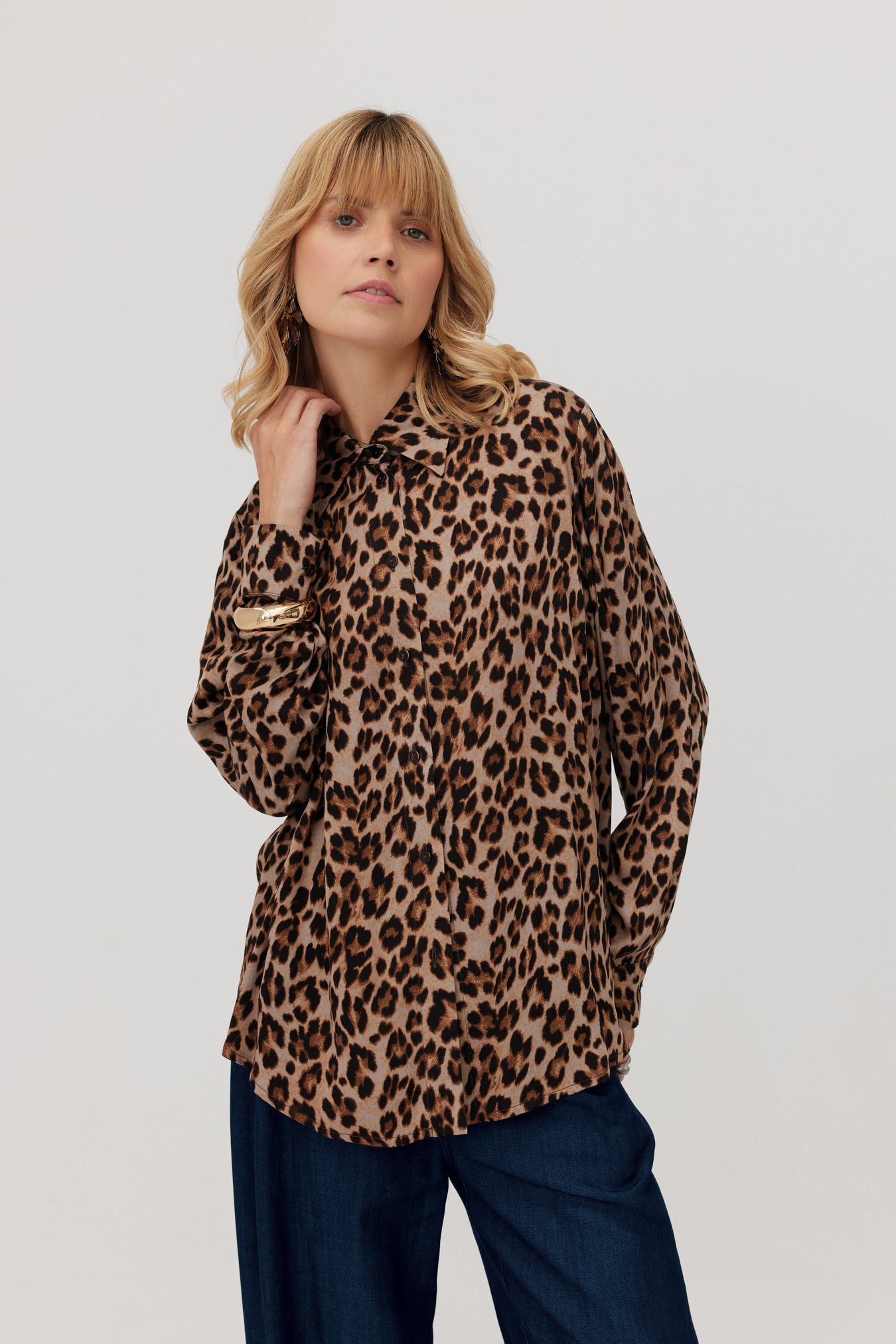 Zapisz się do newslettera i zyskaj 10% rabatu na zakupyKoszula Silko w panterkę to mocny akcent, który od razu przyciąga wzrok i ożywia nawet najprostszą stylizację. Uszyta z miękkiej, lejącej się wiskozy swobodnie układa się na sylwetce. Luźniejszy fason z klasycznym kołnierzykiem pozwala nosić ją na wiele sposobów. Stonowana paleta brązów sprawia, że wyrazisty wzór wygląda subtelnie i z klasą. To koszula, która nadaje stylizacji charakteru – wystarczy prosta biżuteria, by wyglądać nowocześnie i z wyczuciem. Połączona ze spodniami Lapis nabiera miejskiego looku.