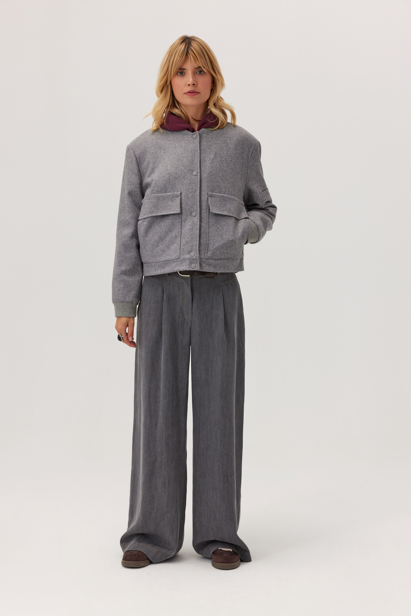 Zapisz się do newslettera i zyskaj 10% rabatu na zakupyKurtka Marengo to bestseller, który cieszył się ogromnym zainteresowaniem i powraca na życzenie klientek. Wysokiej jakości wełna, krótki, pudełkowy krój i duże kieszenie nadają lekkości i wygody, a bordowa, pikowana podszewka z ociepliną otula w chłodniejsze dni. Klasyczna szarość i nowoczesny fason sprawiają, że kurtka świetnie pasuje do codziennych zestawów i warstwowych stylizacji. To ponadczasowy element garderoby, który stanie się Twoim ulubionym wyborem na jesień.