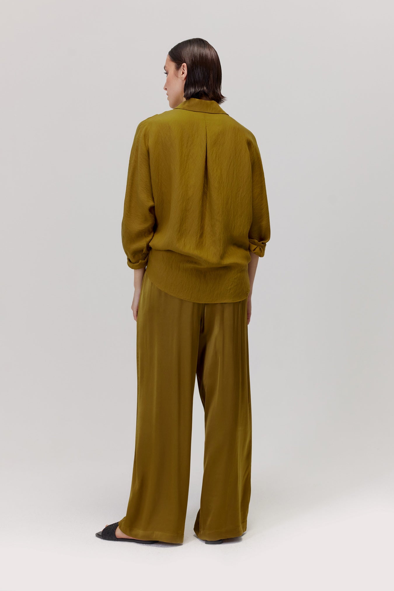 Materiał: miękka, lejąca się tkanina o subtelnym połysku – przyjemna dla skóry, zapewniająca swobodę ruchu;