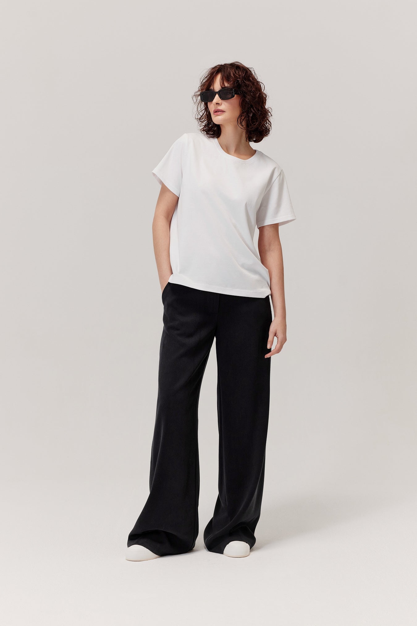 - luźne, szerokie nogawki spodni zapewniają komfort i swobodę ruchów;