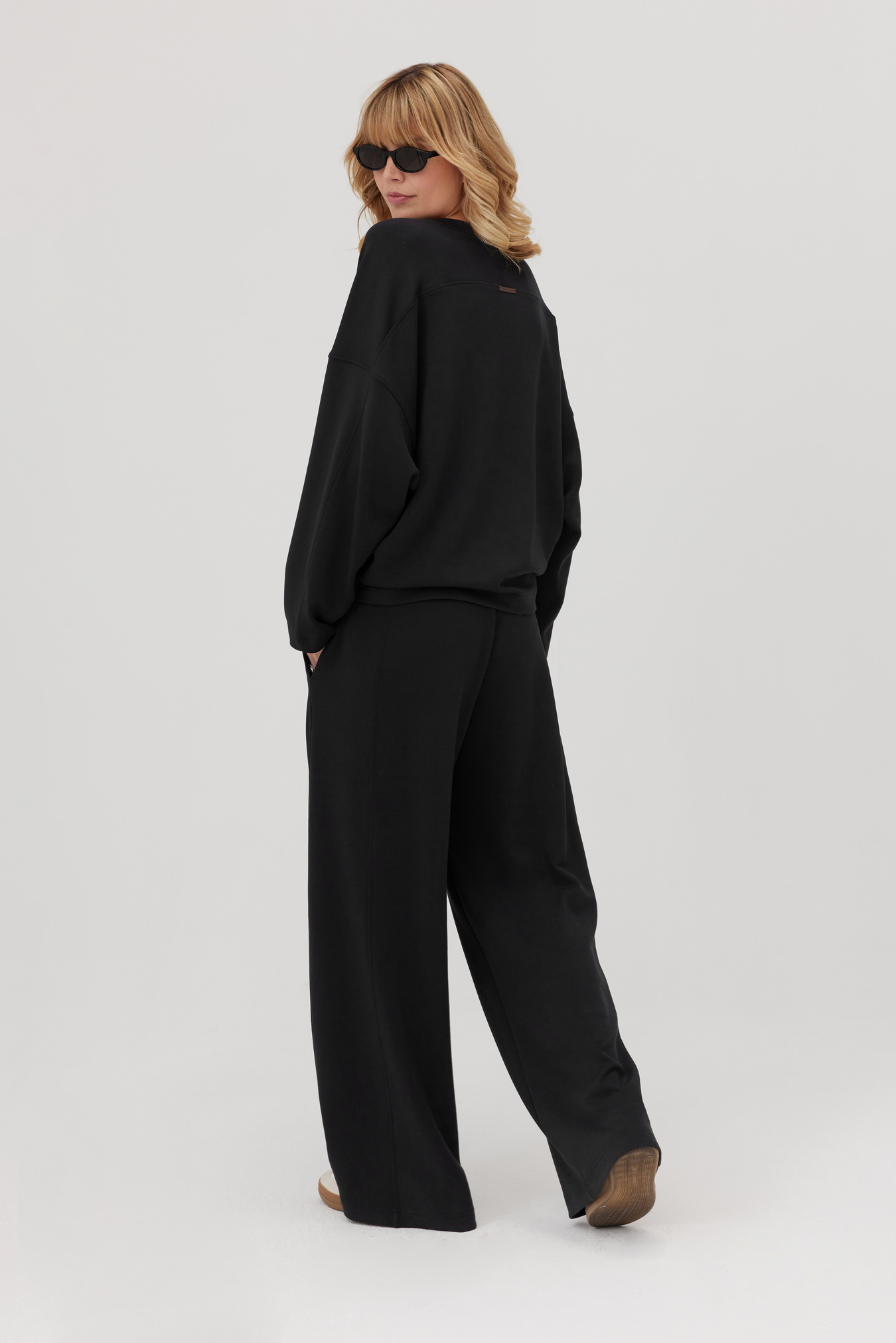 Zapisz się do newslettera i zyskaj 10% rabatu na zakupySpodnie dresowe Flexy z dzianiny mikromodalowej to propozycja dla kobiet, które cenią połączenie luzu i miejskiego stylu. Materiał jest wyjątkowo miękki, elastyczny i oddychający. Szeroki pas z wygodną gumą stabilnie trzyma się talii, a luźny krój z szerokimi nogawkami gwarantuje swobodę ruchów –niezależnie czy idziesz na spacer, trening czy spędzasz dzień w domu. Subtelne lampasy wysmuklają sylwetkę, a ukryte kieszenie w szwach są praktyczne i dyskretne. To musthave dla miłośniczek komfortu, który nie wychodzi z mody