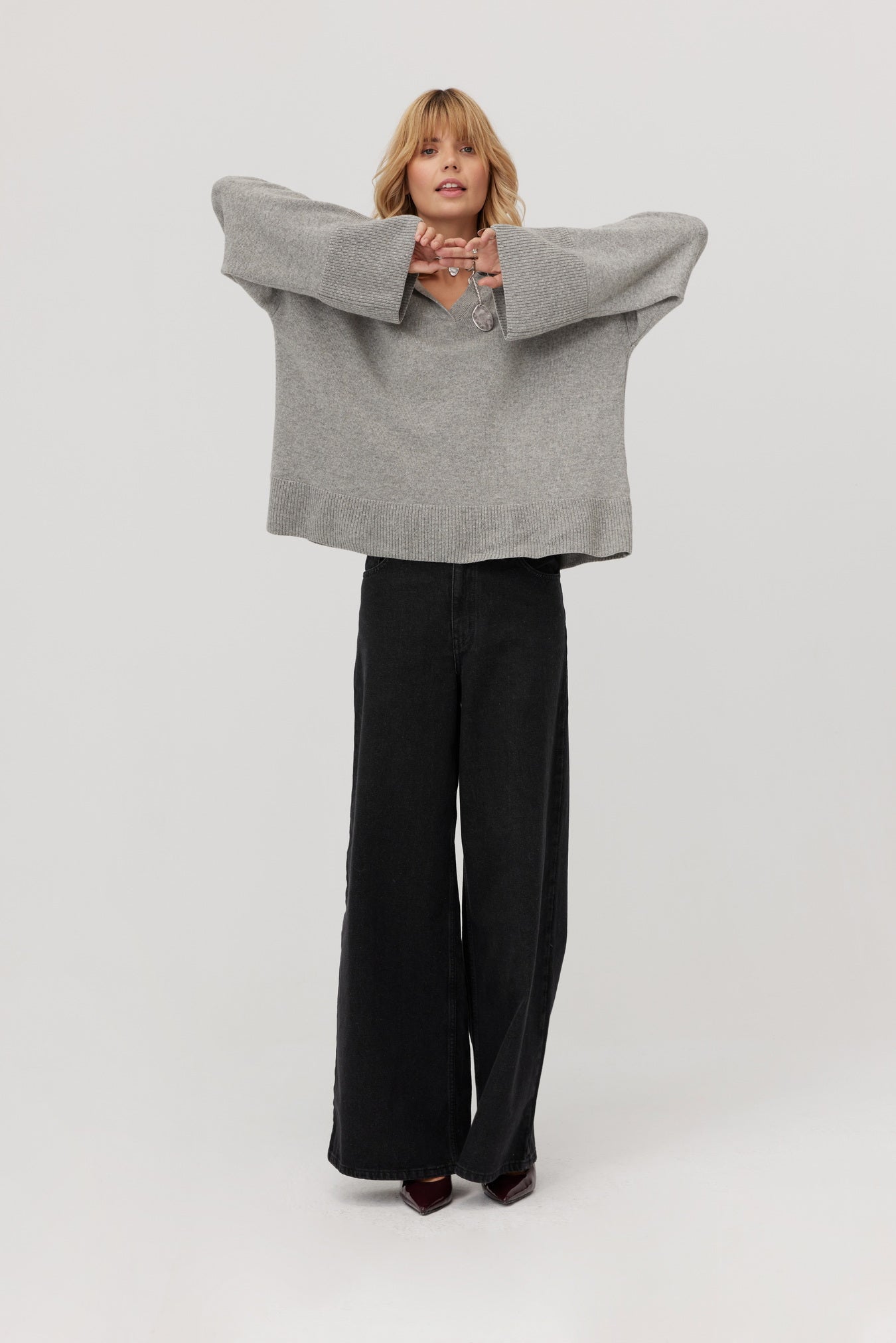 Zapisz się do newslettera i zyskaj 10% rabatu na zakupySweter Adore z wełną i kaszmirem w kolorze szarym to propozycja idealna na chłodniejsze dni. Oversize’owy krój z lekko opuszczoną linią ramion nadaje mu nowoczesny, swobodny charakter, a wyrazisty kołnierz i subtelne detale sprawiają, że wyróżnia się w każdej stylizacji. Luksusowa mieszanka kaszmiru i wełny otula przyjemnym ciepłem i gwarantuje komfort noszenia nawet przez cały dzień.