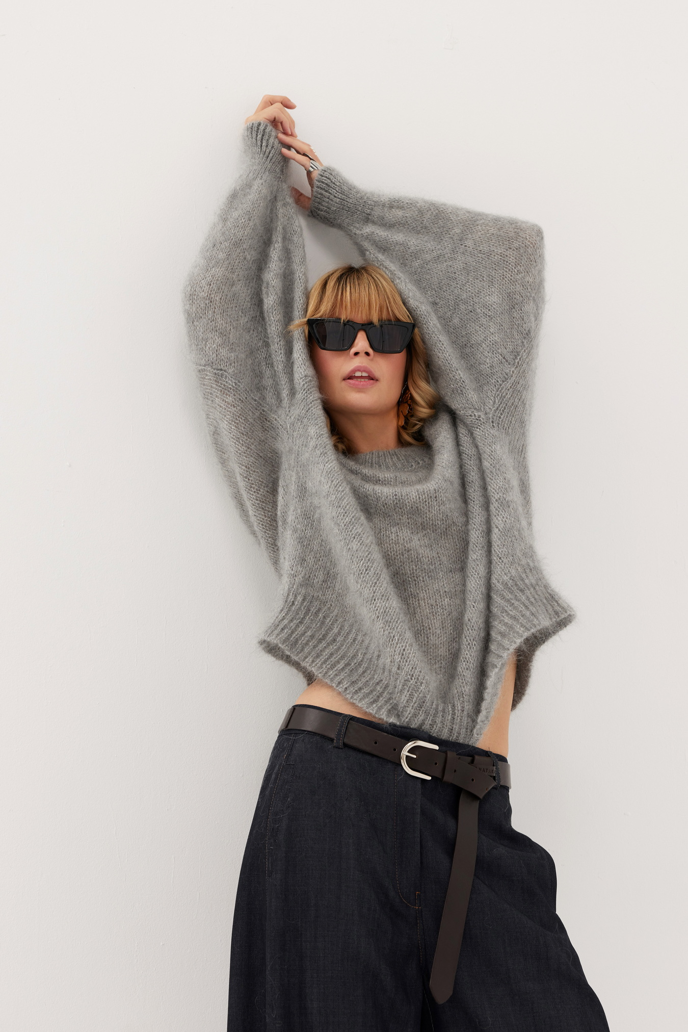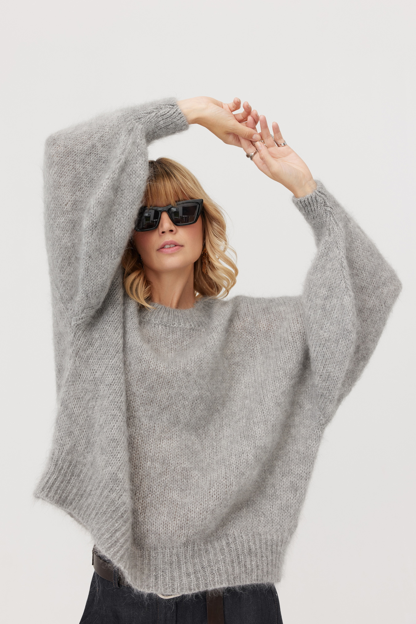 Jest to fason oversize, który pasuje do wielu sylwetek i gwarantuje wygodę noszenia. Rękawy to jego atut - mega luźne, finezyjnie wplecione reglanem. Całość swobodnie, miękko otula sylwetkę.