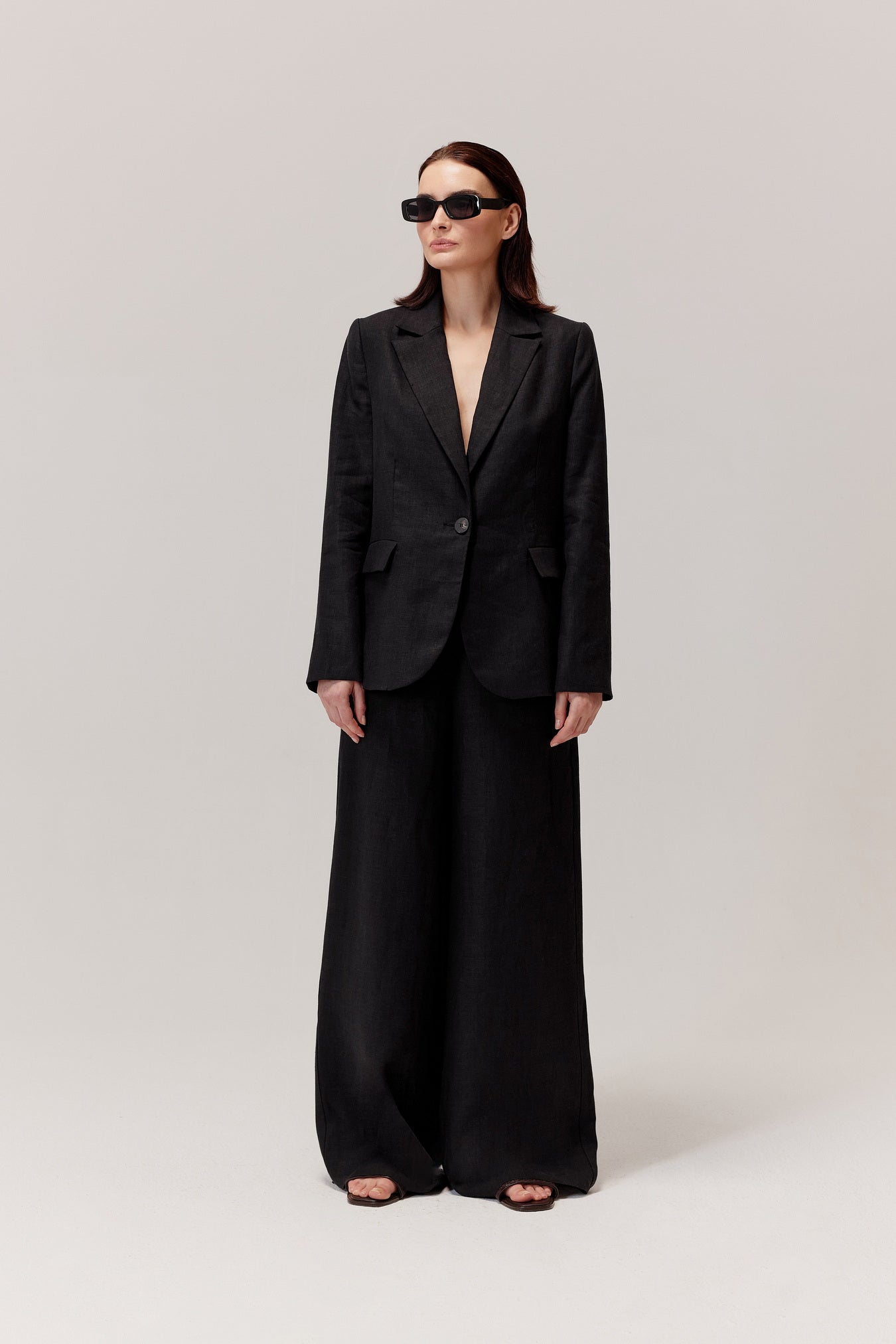 - Żakiet Murlo to klasyczna forma zbudowana na naturalnej strukturze lnu – szlachetna w dotyku, lekka i oddychająca nawet przy pełnym dopasowaniu;